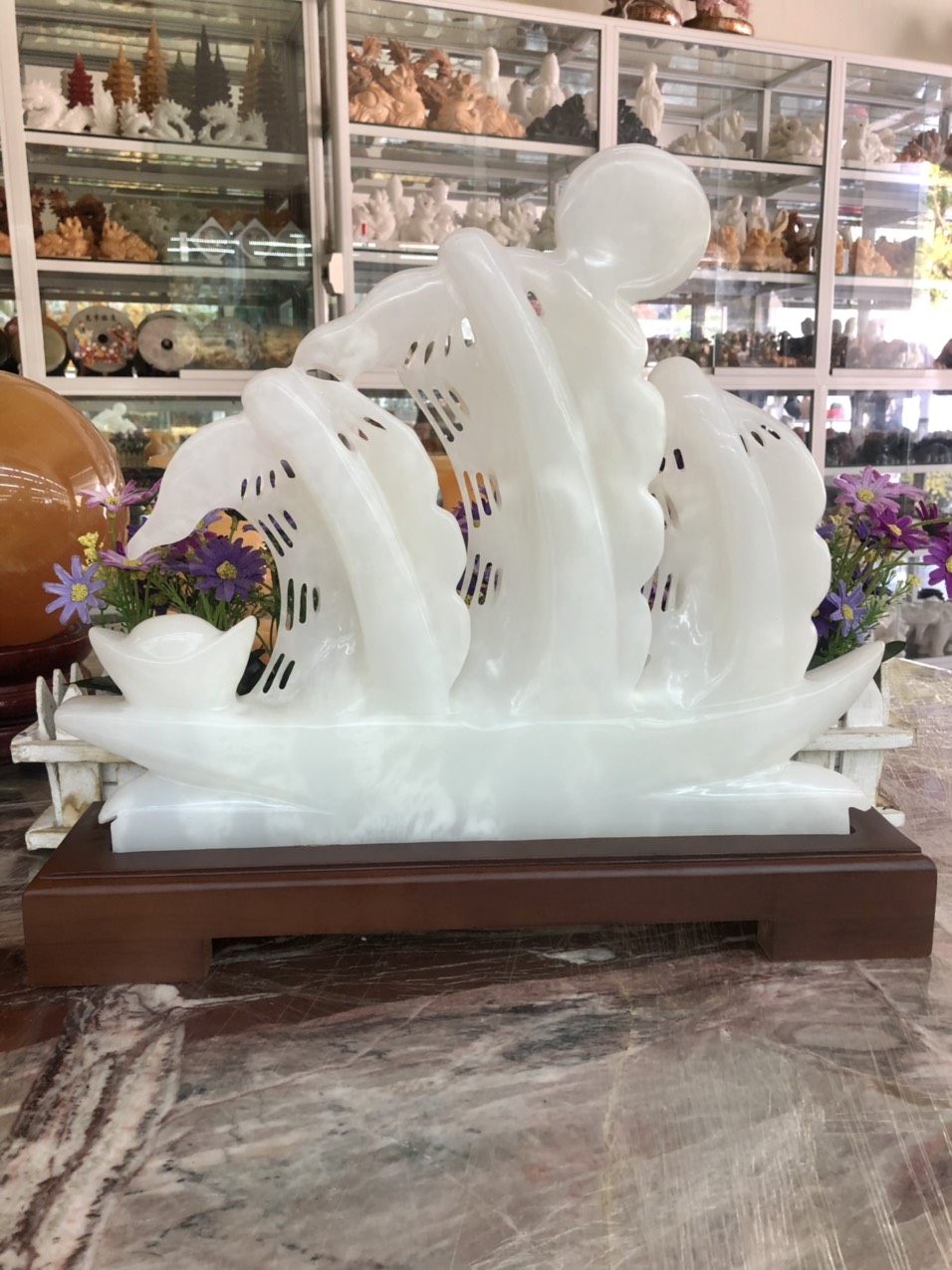 ✨Tượng thuận buồm xuôi gió phong thủy đá bạch ngọc trang trí bàn làm việc, phòng khách