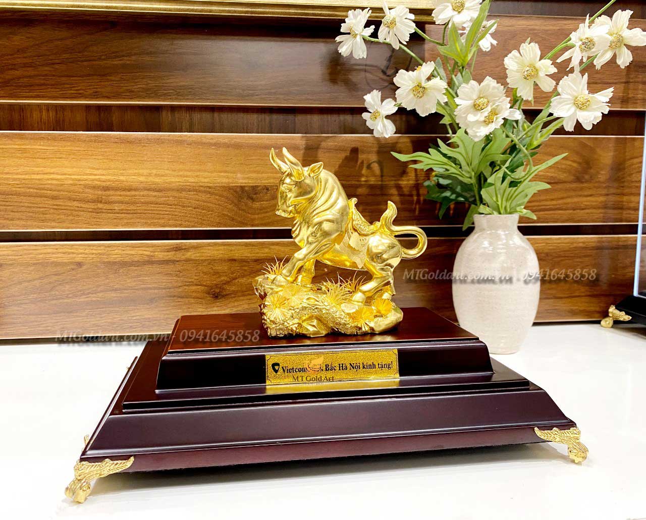 Trâu phong thủy được làm bằng vàng sẽ có tác dụng mạnh nhất. Kim Ngưu toàn thân tỏa ra ánh vàng rực rỡ, sẽ giúp cho con đường công danh sự nghiệp ngày càng tăng tiến, tài lộc vượng phát, sinh tài sinh lộc.