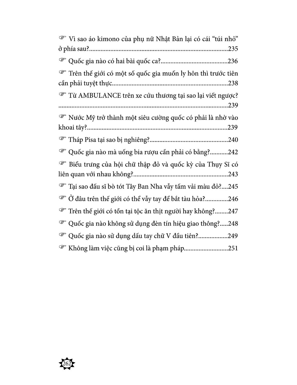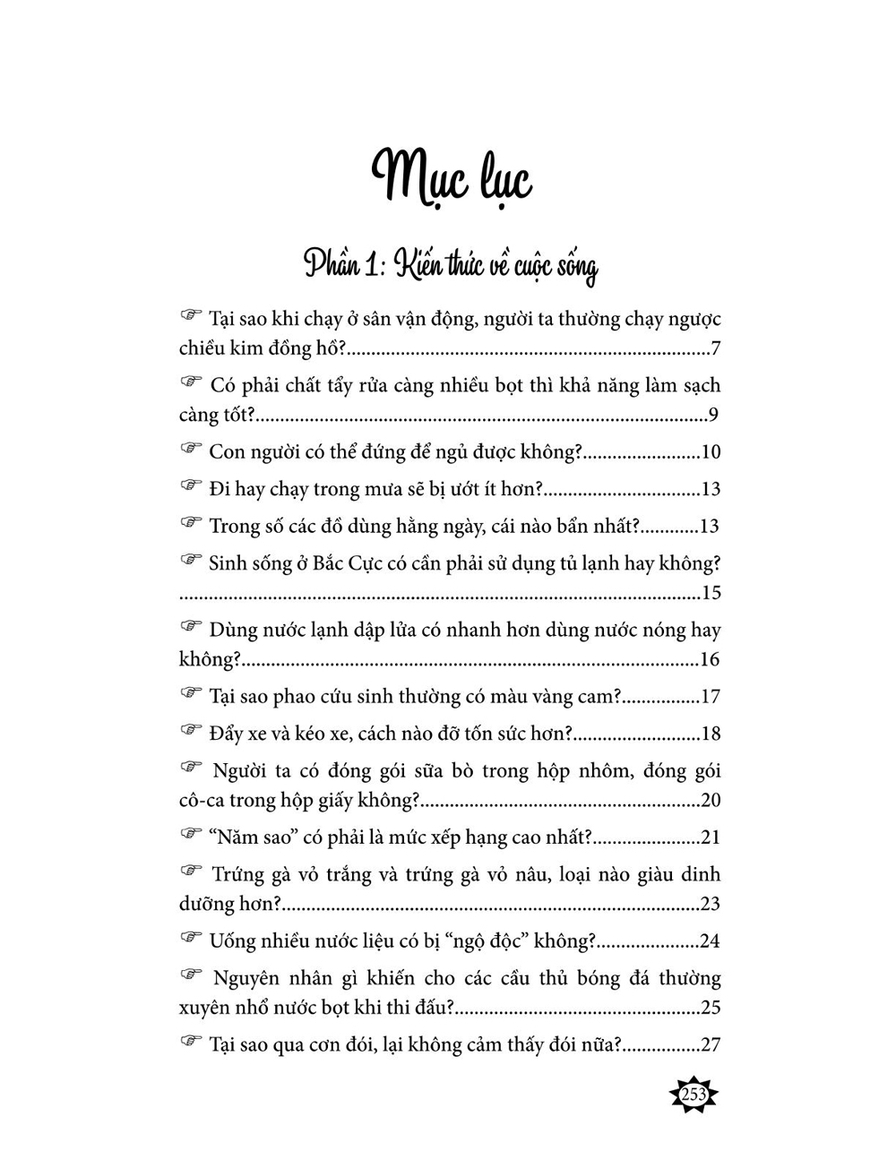 Sách cung cấp các kiến thức về cuộc sống, sức khỏe, động vật, ẩm thực, cơ thể con người, giải trí, lịch sử, văn hóa, khoa học kỹ thuật, về thế giới…nhằm giúp chúng ta phong phú hơn vốn sống của mình hơn, chiêm nghiệm những điều trường học không dạy nhưng rất cần thiết trong công việc và cuộc sống. Trường học dạy chúng ta rất nhiều điều cần thiết cho công việc và cuộc sống nhưng kiến thức sẽ không bao giờ đủ cả, đặc biệt là những kỹ năng mềm.
