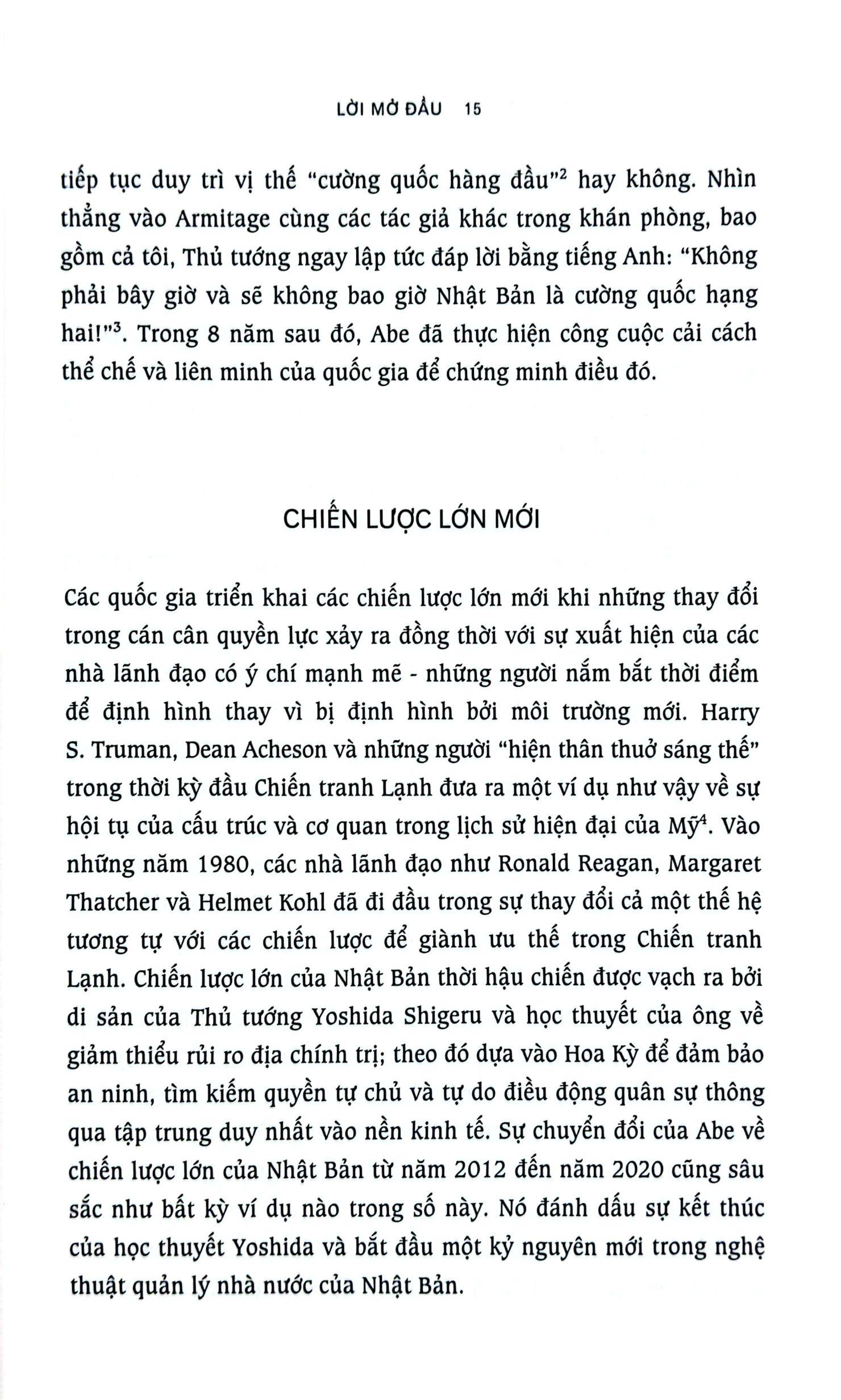 Trong cuốn sách này, Michael J. Green cung cấp một nghiên cứu đột phá và toàn diện về tư duy chiến lược của Nhật Bản dưới thời Abe. Ông giải thích logic nền tảng và thế giới quan đằng sau cách tiếp cận này, từ những tiền lệ quan trọng trong lịch sử Nhật Bản đến các ưu tiên kinh tế, quốc phòng và ngoại giao cụ thể định hình chính sách đương đại đối với Trung Quốc, Hoa Kỳ, hai miền Triều Tiên và khu vực Ấn Độ Dương - Thái Bình Dương. Dựa trên hai thập kỷ tiếp cận Abe và các nhà lãnh đạo chính trị, quân sự và kinh doanh khác của Nhật Bản, Green cung cấp góc nhìn của người trong cuộc về các chủ đề như cách Nhật Bản theo đuổi cạnh tranh với Trung Quốc mà không đánh mất lợi ích của hợp tác kinh tế. Đánh giá những điểm mạnh và điểm yếu trong vai trò tích cực mới của Nhật Bản, cuốn sách đã làm sáng tỏ một giai đoạn có ý nghĩa sâu sắc đối với tương lai của sự cạnh tranh của Hoa Kỳ với Trung Quốc và các vấn đề quốc tế ở châu Á một cách rộng rãi hơn.