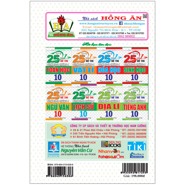 Combo Ngân Hàng: Câu Hỏi Trắc Nghiệm Tiếng Anh+Chuyên Đề Điền Từ Vào Đoạn Văn Tiếng Anh +Chuyên Đề Ngữ Pháp TA Công ty phát hành: Nhà Sách Hồng Ân Tác Giả: Nhiều tác