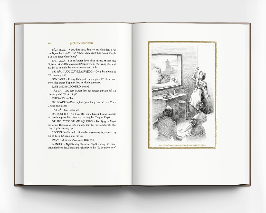 Cuốn sách có 15 bức minh họa mới chia đều cho 5 vở kịch do họa sĩ Lê Trí vẽ với cảm hứng từ phong cách scratchboard.