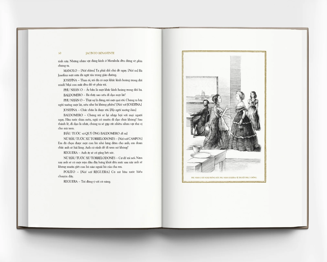 Ở đây bạn đọc sẽ thấy một Benavente thấm đẫm tư tưởng tự do, thấu hiểu tâm lý con người, và đặc biệt tôn vinh phụ nữ. Các nhân vật nữ của ông thường chiếm vai trò rất quan trọng dù lấy bối cảnh ở giới thượng lưu hay giới lao động nghèo vùng thôn quê. Hầu hết kịch của Benavente lấy bối cảnh ở giới thượng lưu, tầng lớp người đầy hào nhoáng bên ngoài nhưng mục ruỗng bên trong mà ông đã quá quen thuộc vì sống với họ từ tấm bé, cùng với địa danh quen thuộc là thành phố Madrid.