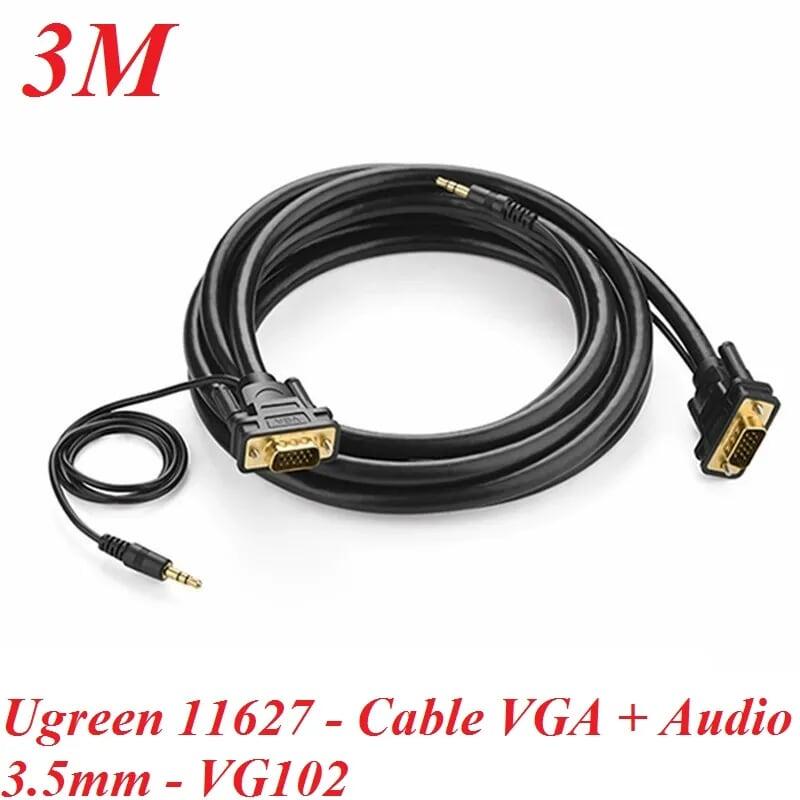Ugreen 11643 Cáp VGA hỗ trợ audio 3.5mm dài 3m Cable VGA + Audio 3.5mm VG102