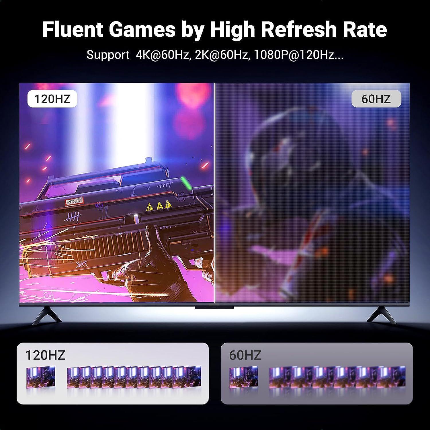 1. 8K resolution support at 60Hz and 4K resolution support at 120Hz for high-definition video and audio. 2. HDR (High Dynamic Range) support for improved color depth, contrast, and brightness. 3. Plug-and-play design, no additional