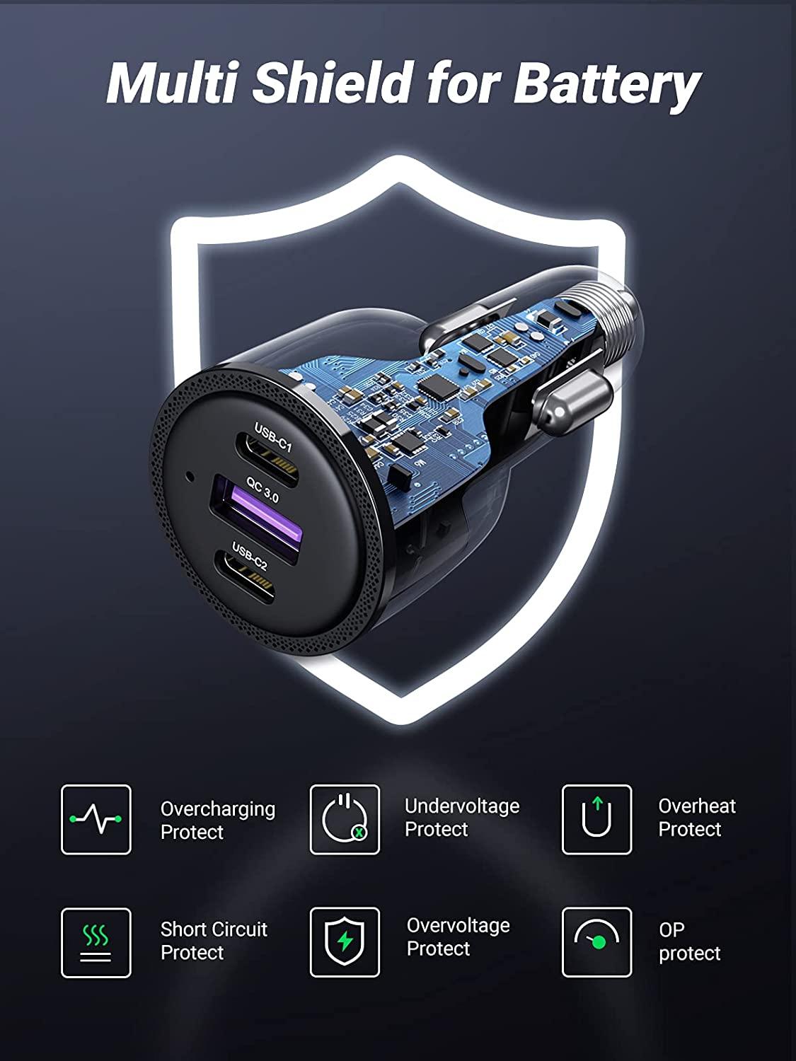 ✨Ugreen UG20467CD239TK 69w 2 cổng Type C + 1 usb A Bộ sạc nhanh 3 cổng điện thoại trên ô tô màu đen - HÀNG CHÍNH HÃNG
