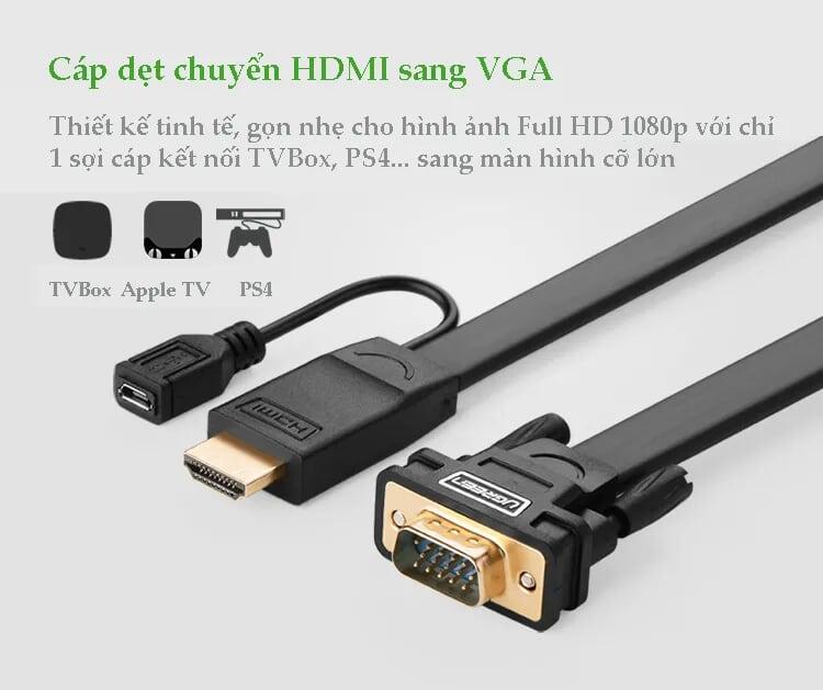 Mua tại TiktokUgreen 40267 Hdmi To Vga Converter Flat Cable Đen 1M5 Flat Mm101