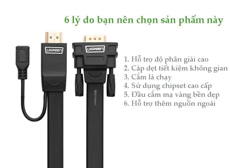 Ugreen 40267 Hdmi To Vga Converter Flat Cable Đen 1M5 Flat Mm101 1. Features: Connect HDMI port to VGA monitor 2. Cable length: 1.5M 3. Cable type: Flat 4. Material: Pure copper core, gold plated