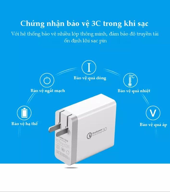 Cục Sạc Nhanh 20W 4 Cổng Sạc PD Type C Quick Charge 3.0 18W, Có Đèn Led Phát Sáng, Sạc 4 Máy