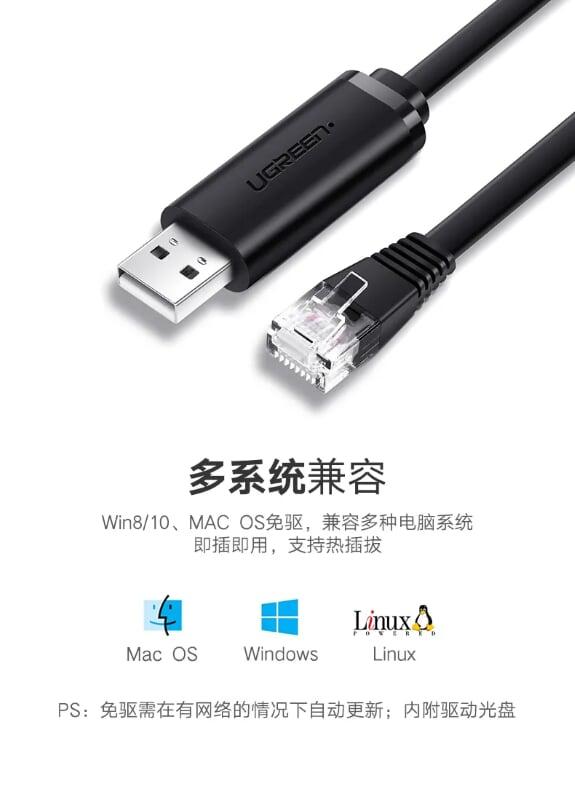 Ugreen 50773 1.5m usb to rj45 console cable black cm204 1. USB to RJ45 Console Cable can connects your computer or laptop's USB port to your modern router firewall switch or other device with a