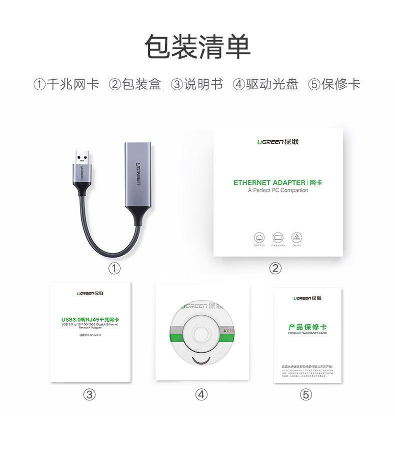 Ugreen 20255 Usb 3.0 To Rj45 Lan Gigabit White Cr111 1. USB3.0 Giga Lan Card 2. Color: White ABS 3. 100g 4. 20 x 15 x 5 cm