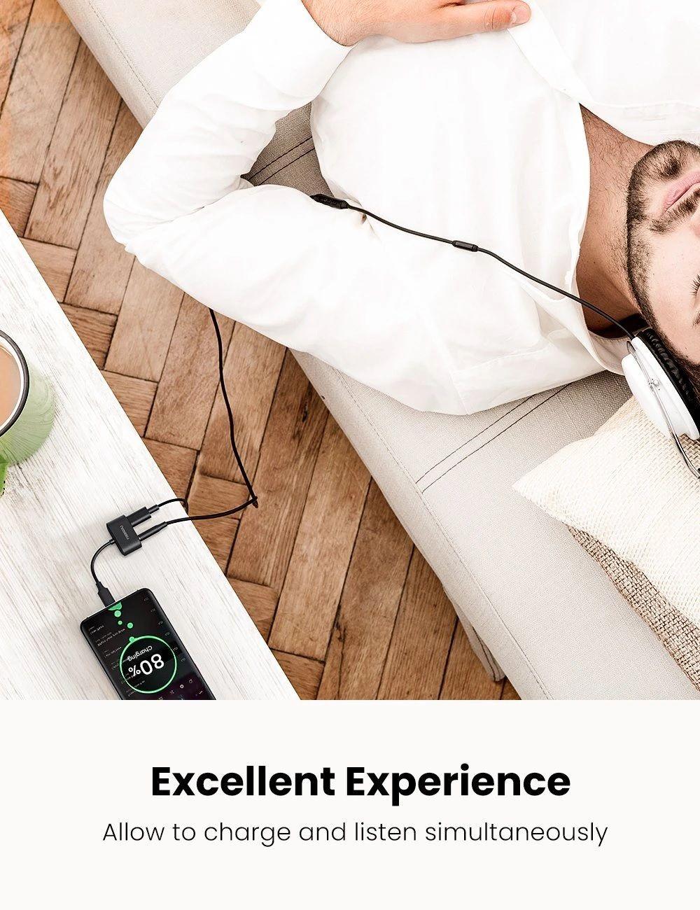 ✨Ugreen UG70606CM193TK 2 trong 1 bộ chuyển usb type C ra 3.5mm Audio và sạc cổng C màu đen - HÀNG CHÍNH HÃNG