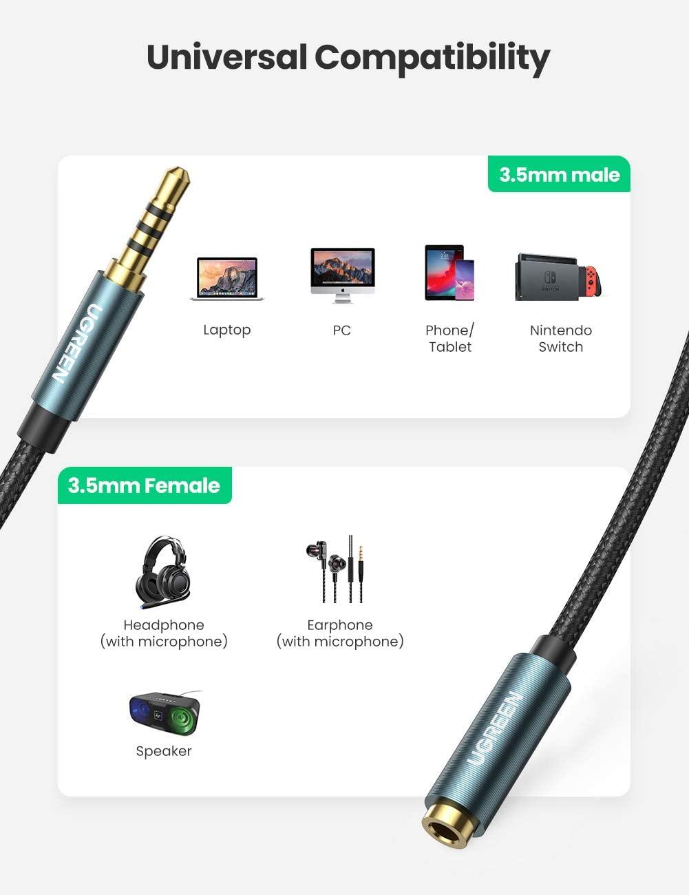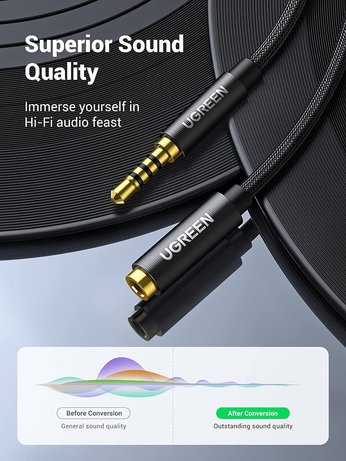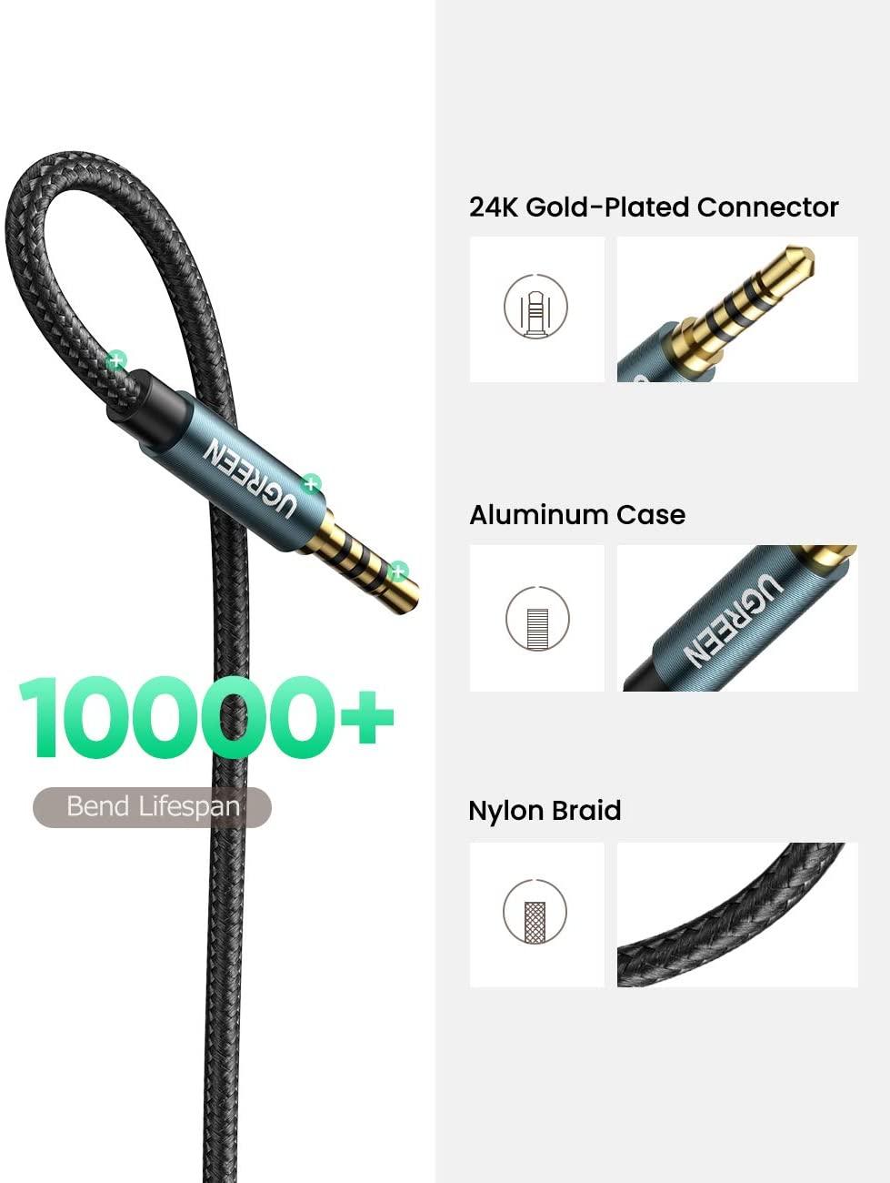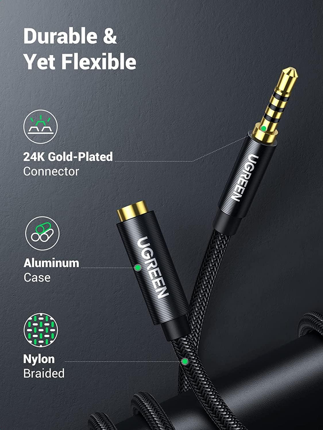 ✨Ugreen UG70878AV118TK 3M 4 khấc Cáp 3.5mm nối dài đầu mạ vàng dây bọc dù - HÀNG CHÍNH HÃNG