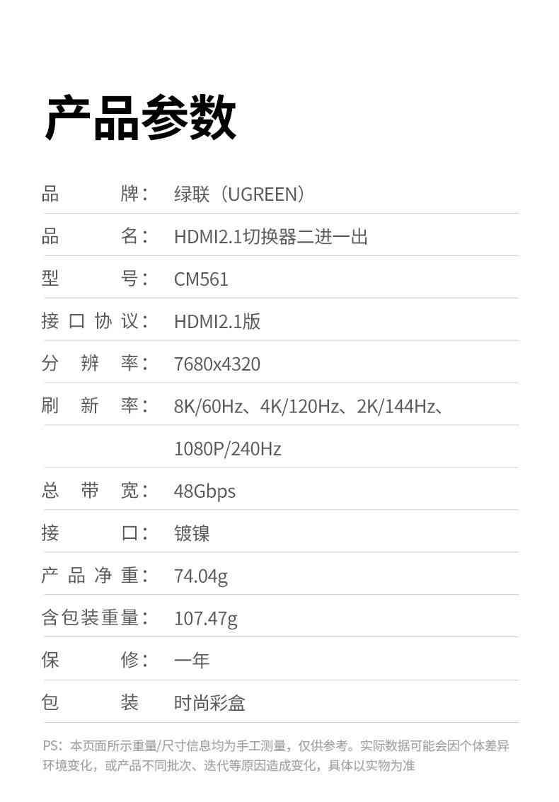 ✨Ugreen UG90385CM561TK 8k@60Hz Bộ gộp HDMI 2 vào 1 ra chuẩn HDMI 2.1 - HÀNG CHÍNH HÃNG