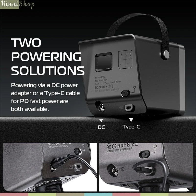 - Đèn Led Ulanzi LT005 thiết kế nhỏ gọn trang bị tay cầm giúp dễ dàng di chuyển, dải nhiệt rộng nhiều hiệu ứng sáng khác nhau, công suất 60W mang lại độ sáng cao từ 3-6m, trang