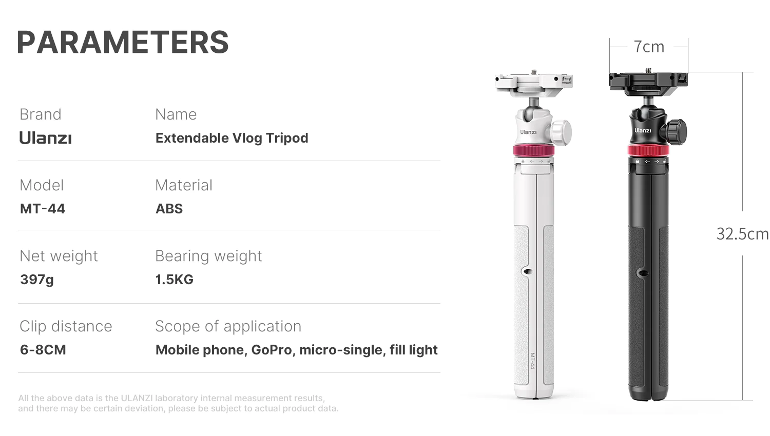 Ulanzi MT-44 - Tripod Mini Cho Máy Ảnh, Điện Thoại, Tải Trọng 1.5 Kg, Chiều Cao Tối Đa 109cm