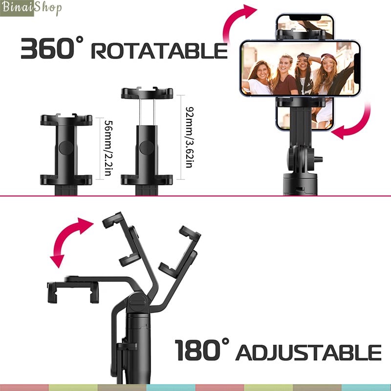 TÍNH NĂNG NỔI BẬT - Khả năng chống rung điện tử cực tốt - Độ dài tối đa lên đến 86cm tha hồ selfie - Khóa ngang tự động 180 độ, chuyển đổi màn hình