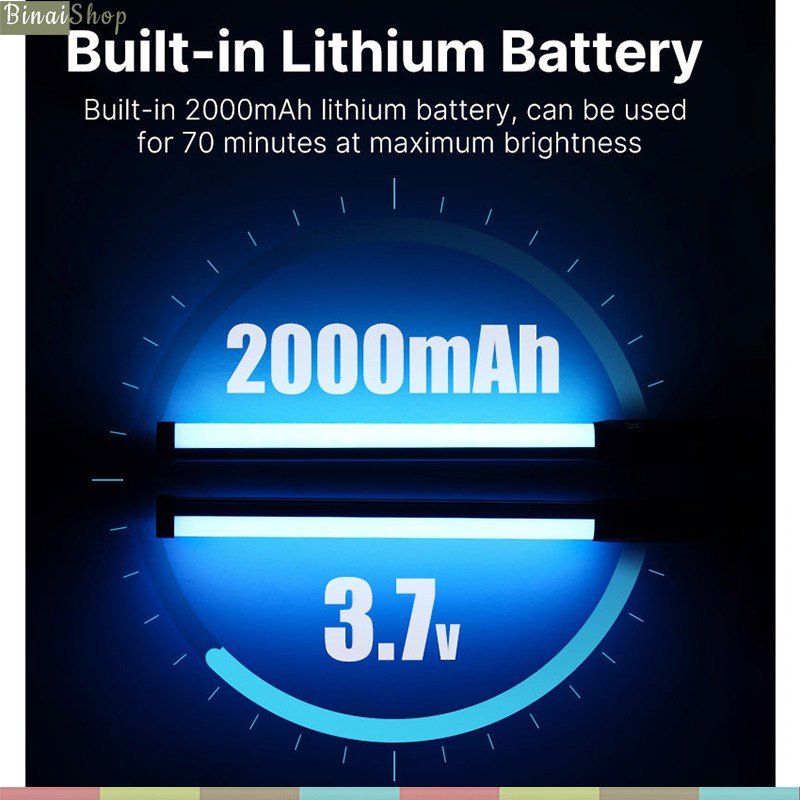 • Tích hợp pin lithium dung lượng lớn 3.7V 2000mAh, hỗ trợ thời gian làm việc lên đến 70 phút ở độ sáng tối đa sau khi được sạc đầy. Sạc nhanh Type-C, hỗ trợ vừa làm việc vừa sạc.