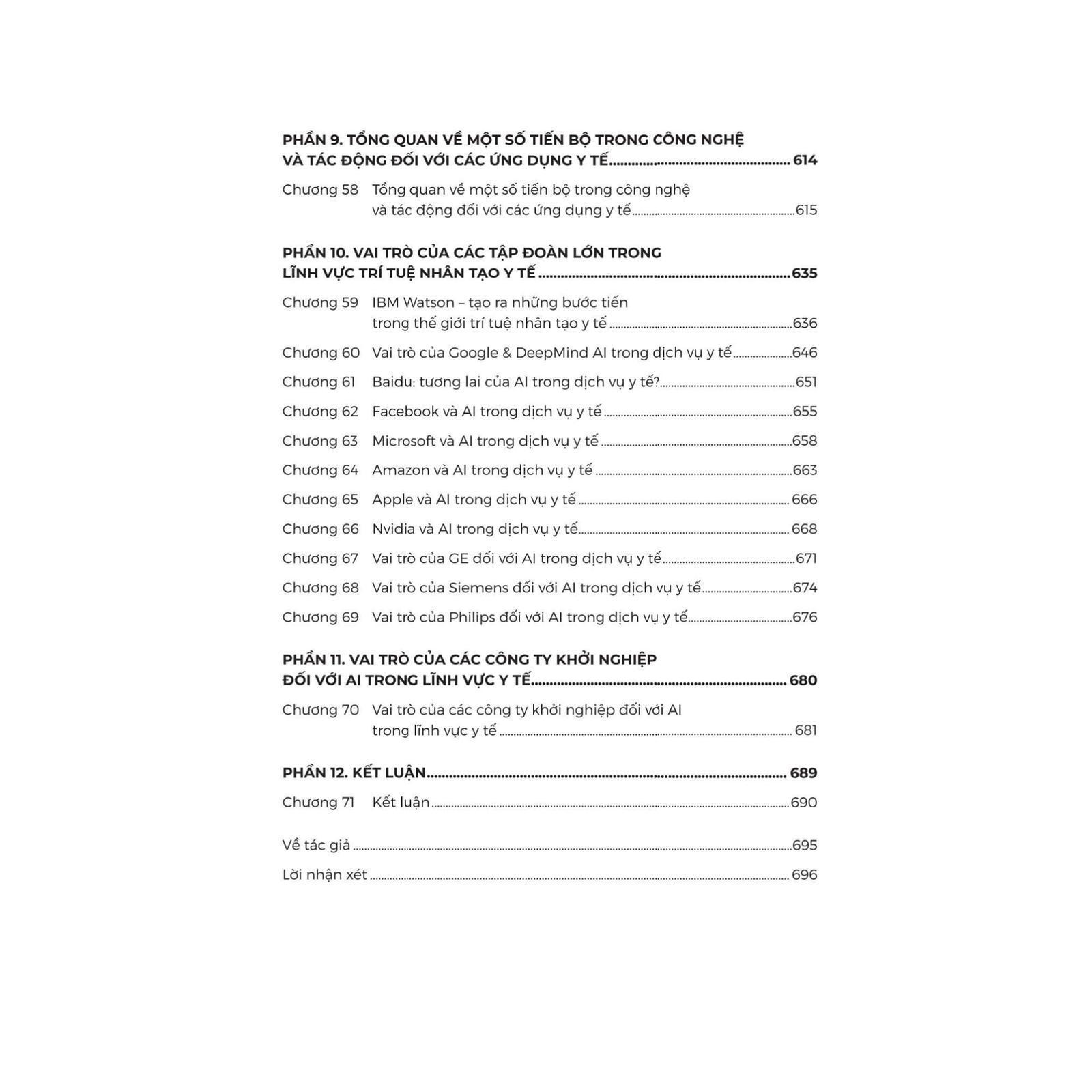 Cuốn sách được chia thành nhiều chương, mỗi chương tập trung vào một khía cạnh cụ thể của AI trong y tế: