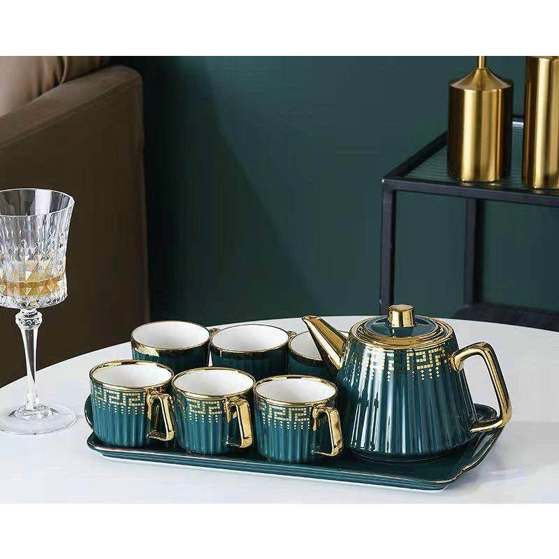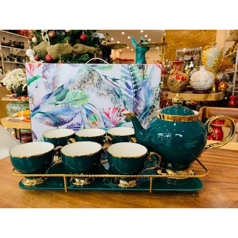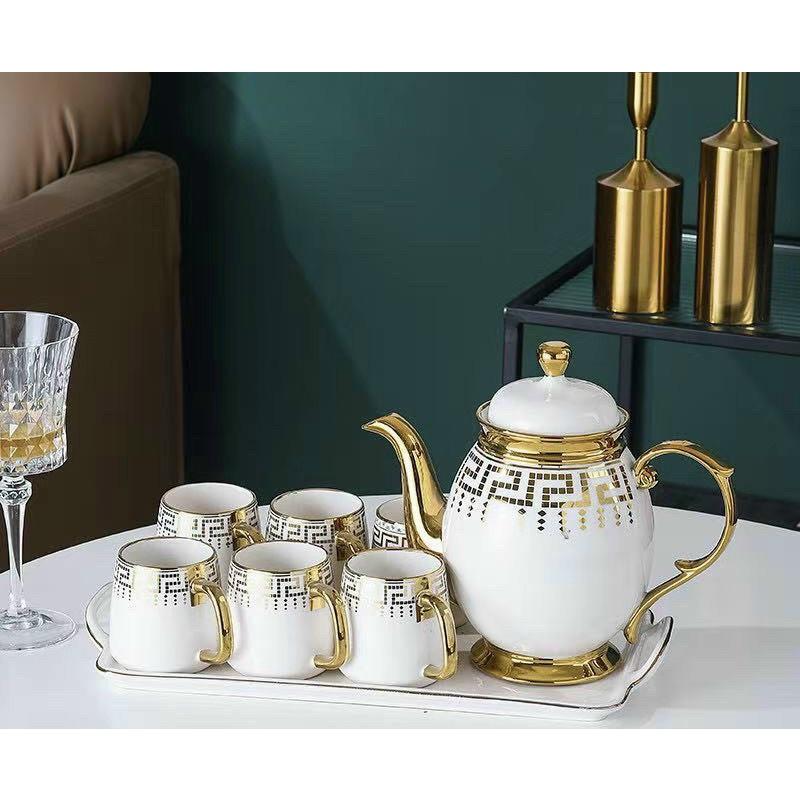 ✨Uống trà, ấm chén kèm khay màu trắng Vàng, sứ xương cao cấp quà tặng ý nghĩa