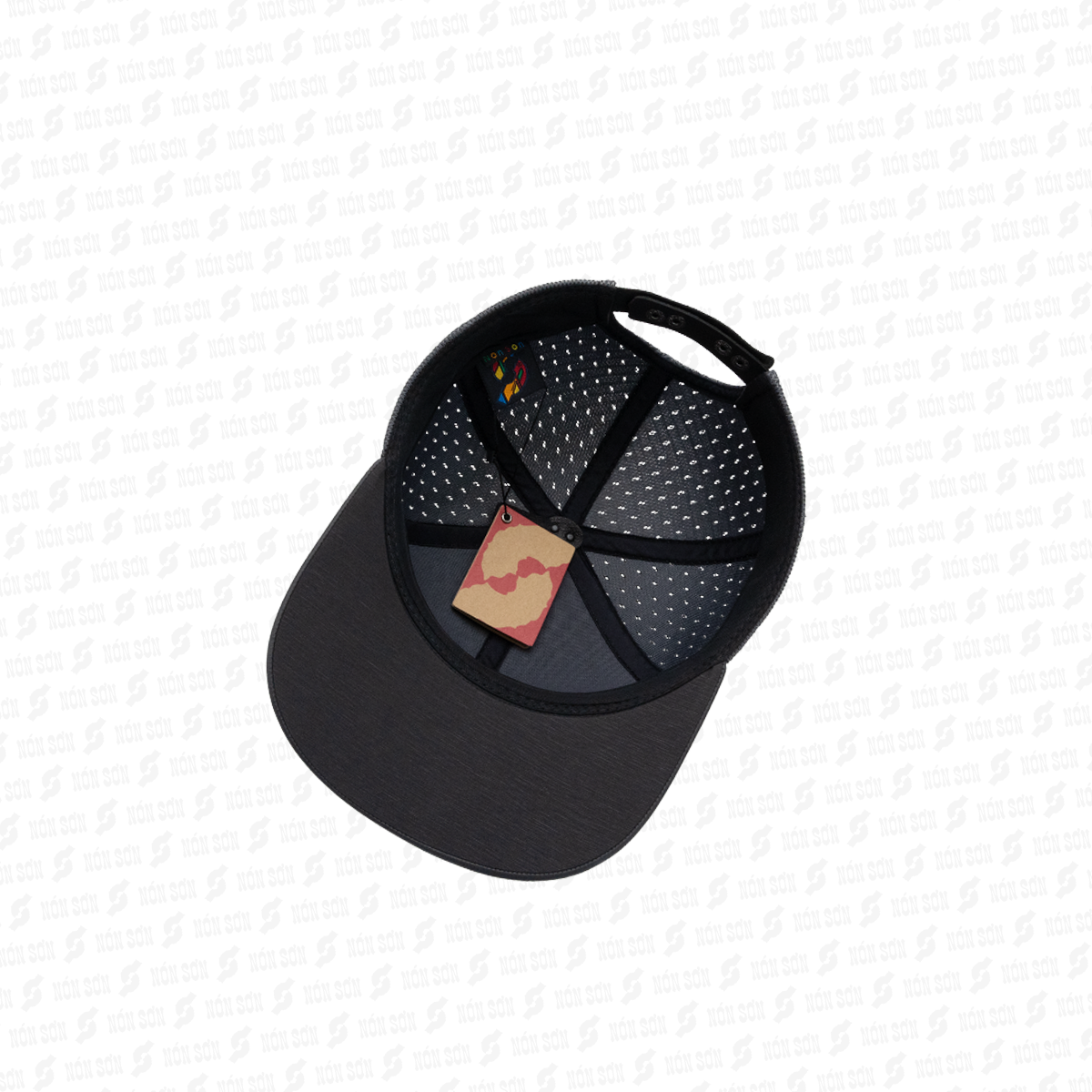 - Sử dụng kẹp phơi vào đai bên trong nón (vị trí giữa lưỡi trai), sao cho lưỡi nón hướng phía trên và dây đuôi hướng phía dưới.