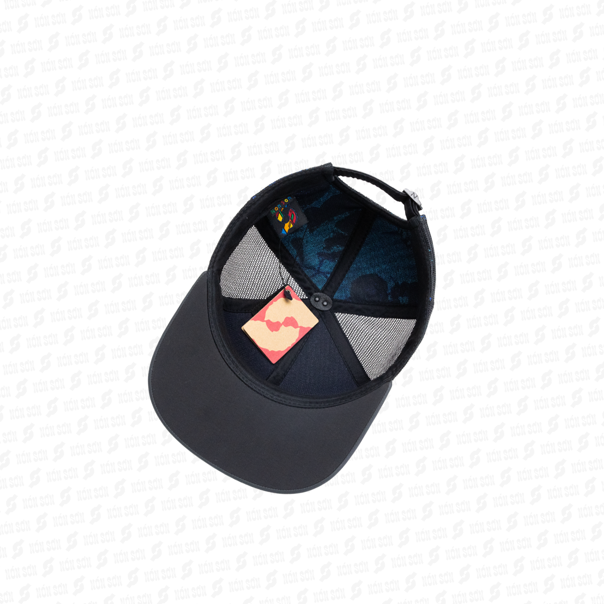 - Sử dụng kẹp phơi vào đai bên trong nón (vị trí giữa lưỡi trai), sao cho lưỡi nón hướng phía trên và dây đuôi hướng phía dưới.