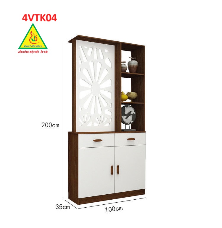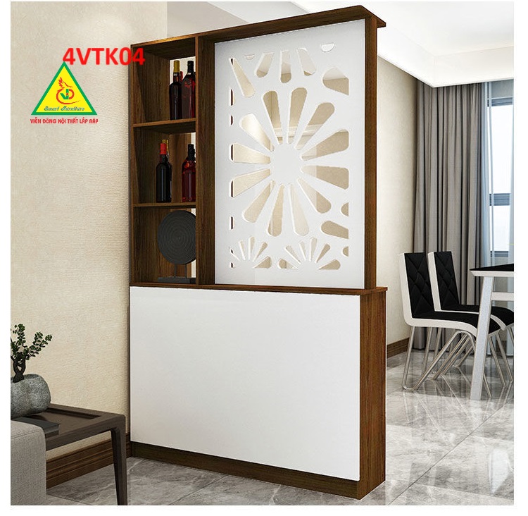 Vách ngăn còn có tủ giúp lưu trữ những vật dụng cá nhân của gia chủ , tận dụng được không gian sống tốt hơn. Sản phẩm lắp ráp dễ dàng di chuyển khi cần thiết.