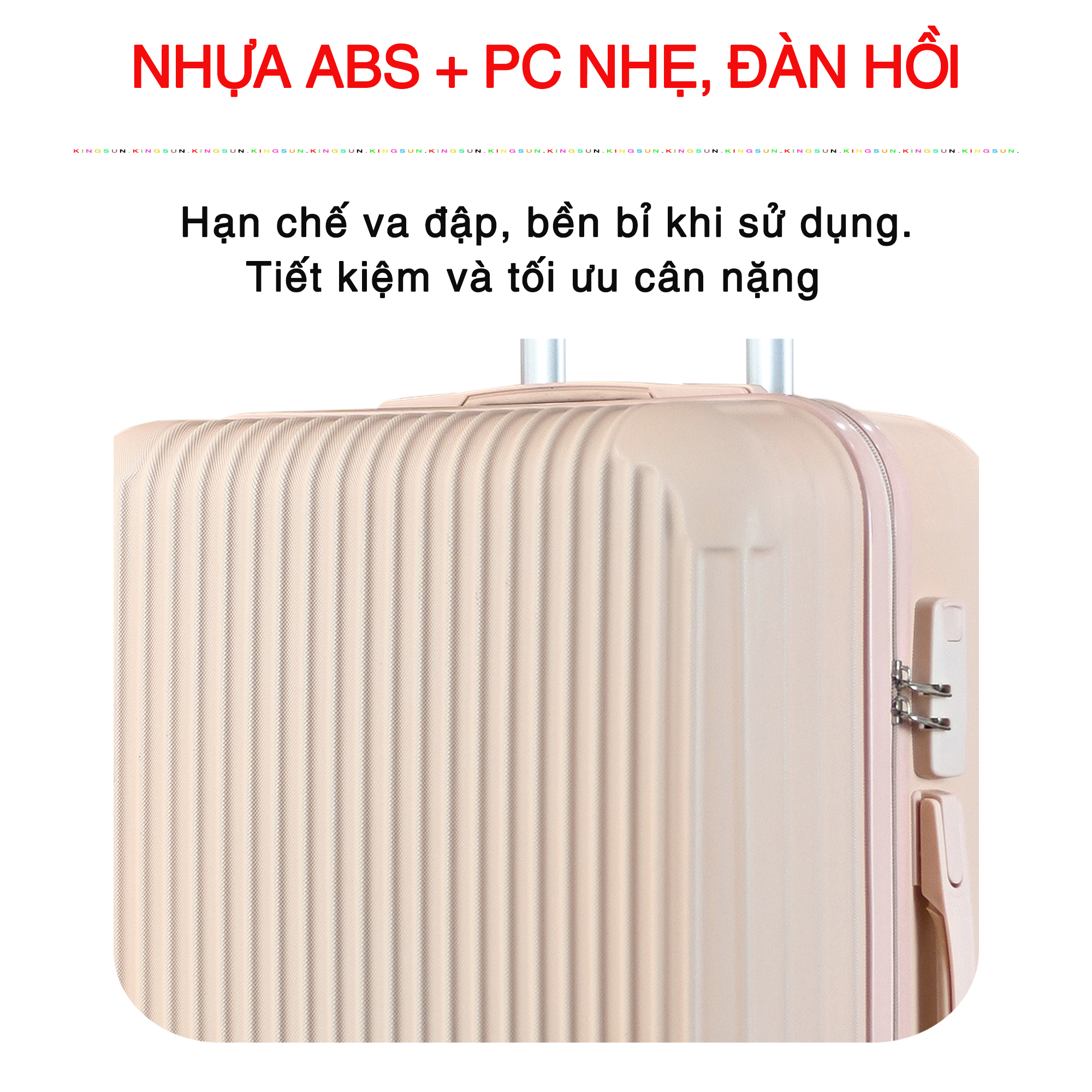 Chất liệu nhựa ABS tối ưu trọng lượng Vali được hoàn thiện từ chất liệu nhựa ABS (Acrylonitrile Butadiene Butadiene) với khả năng chống va đập tương đối tốt, kiểu dáng và màu sắc đa
