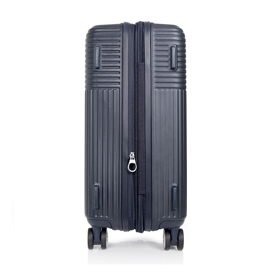1. Khả năng nới rộng: 5 cm 2. Phía dưới vali có tay cầm đúc, quai xách ngang, khóa TSA theo tiêu chuẩn Hoa Kỳ 3. Bánh xe đôi xoay 360 độ 4. Phía trong