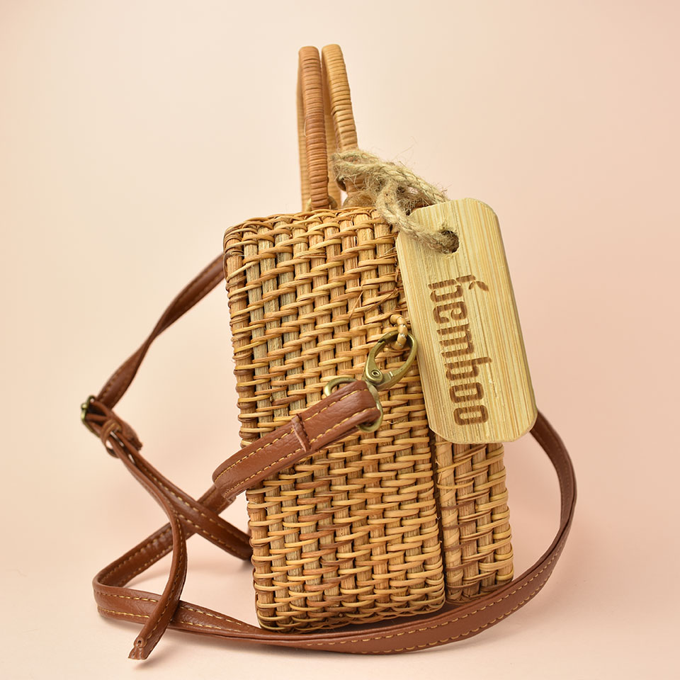 Chất liệu: Thân túi: 100% sợi mây - Dây túi: giả da - Lót túi: vải cotton 100% kèm khóa gài bằng nút bấm