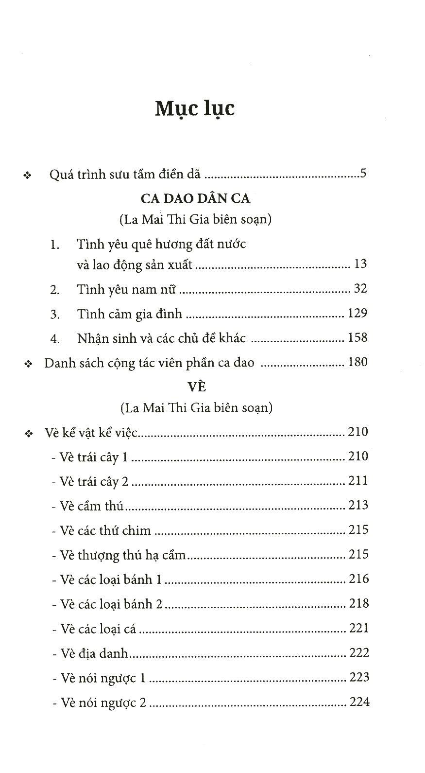 Cuối phần tác phẩm sưu tầm của mỗi thể loại, nhóm sưu tầm điền dã đều ghi rõ thông tin của những cộng tác viên đã cung cấp cho nhóm những tác phẩm trên"