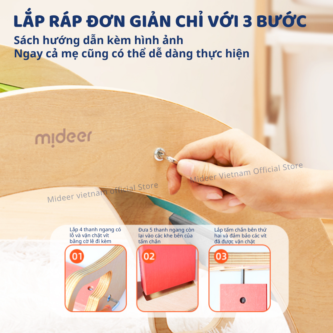 - SỔ HƯỚNG DẪN SINH ĐỘNG: Hình ảnh minh họa kèm văn bản hướng dẫn để ba mẹ tham khảo nhiều bài tập và hoạt động khác nhau đáp ứng nhu cầu phát triển thể chất đa dạng của bé, giúp bé khỏe mạnh và phát triển toàn diện. Ván thăng bằng montessori bập bênh vận động cho bé Mideer Rainbow Wooden Climber