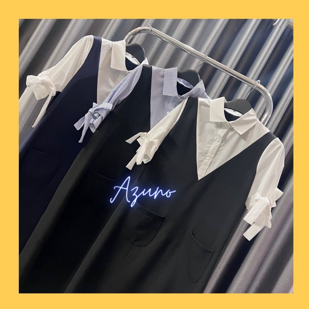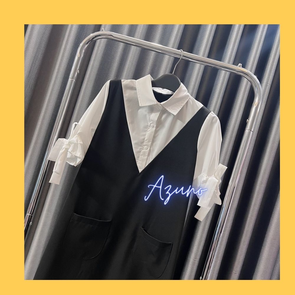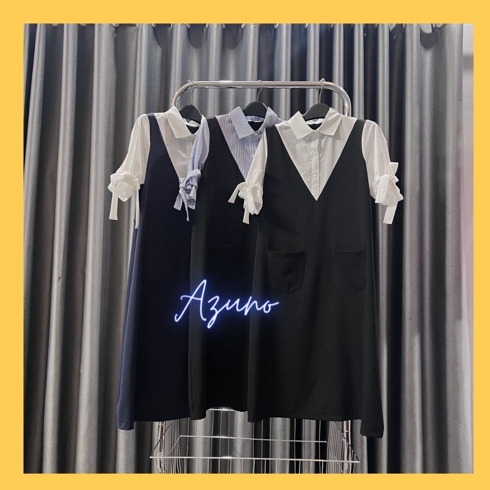 1. Thông tin chi tiết sản phẩm Váy bầu phối cổ tròn, đầm bầu đi làm, đi chơi, thiết kế sang trọng by Azuno Chất liệu chéo nhật phối trượt tằm xờ siêu mát tay