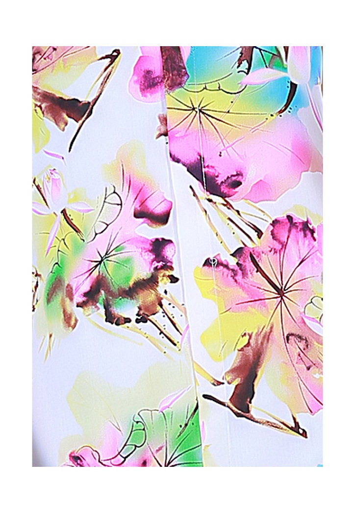 ✨Váy đầm lanh (tole) Vicci CVN004.2 vải lanh chéo Hàn cao cấp, thiết kế tay ngắn, dáng đuôi cá suông nhẹ, mềm nhẹ, thấm hút mồ hôi, họa tiết hoa sen hồng nền trắng vàng, phù hợp mặc nhà, đi chơi