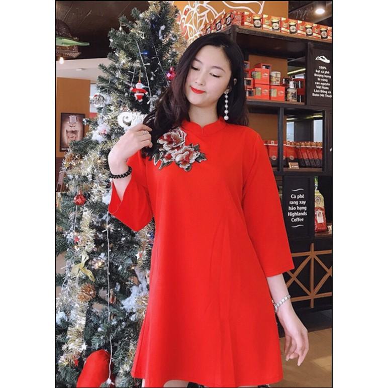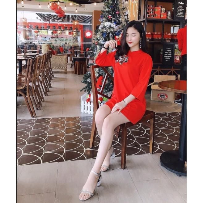 Thiết kế nổi bật: Váy nhung hai dây, quai nơ dễ thương, dáng suông thoải mái, che khuyết điểm tốt. Điểm nhấn hoa trà tinh tế, mang lại vẻ ngoài nữ tính và sang trọng.