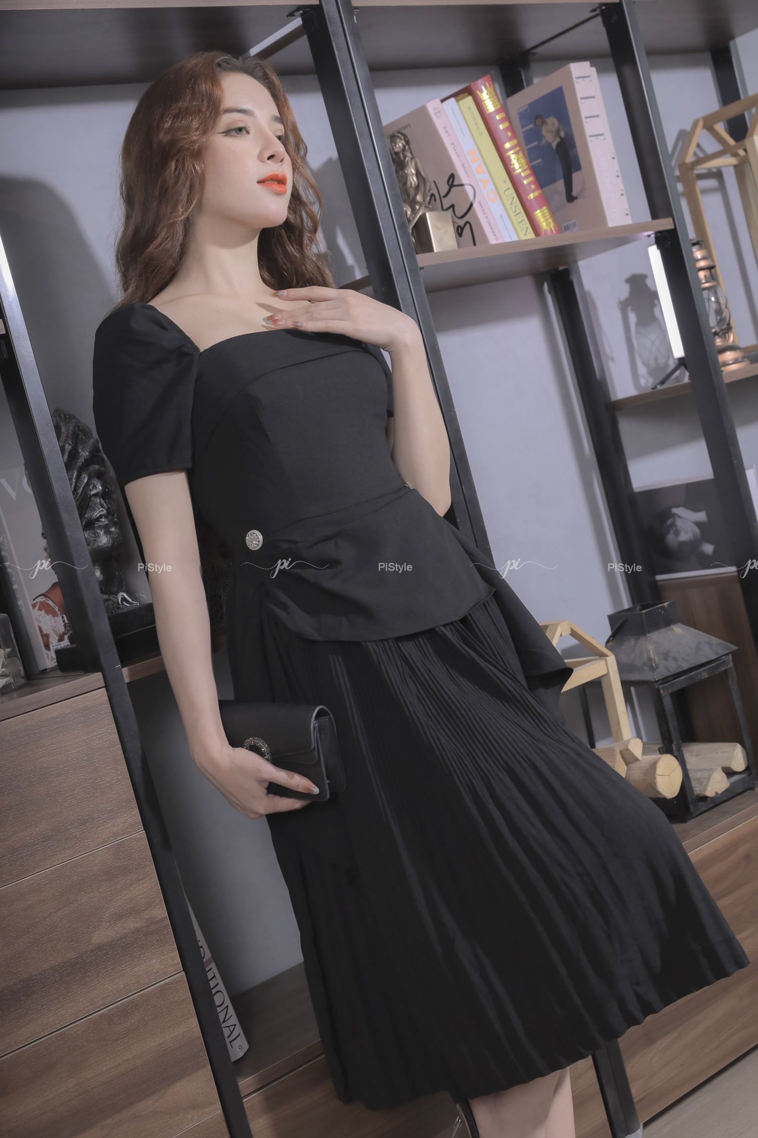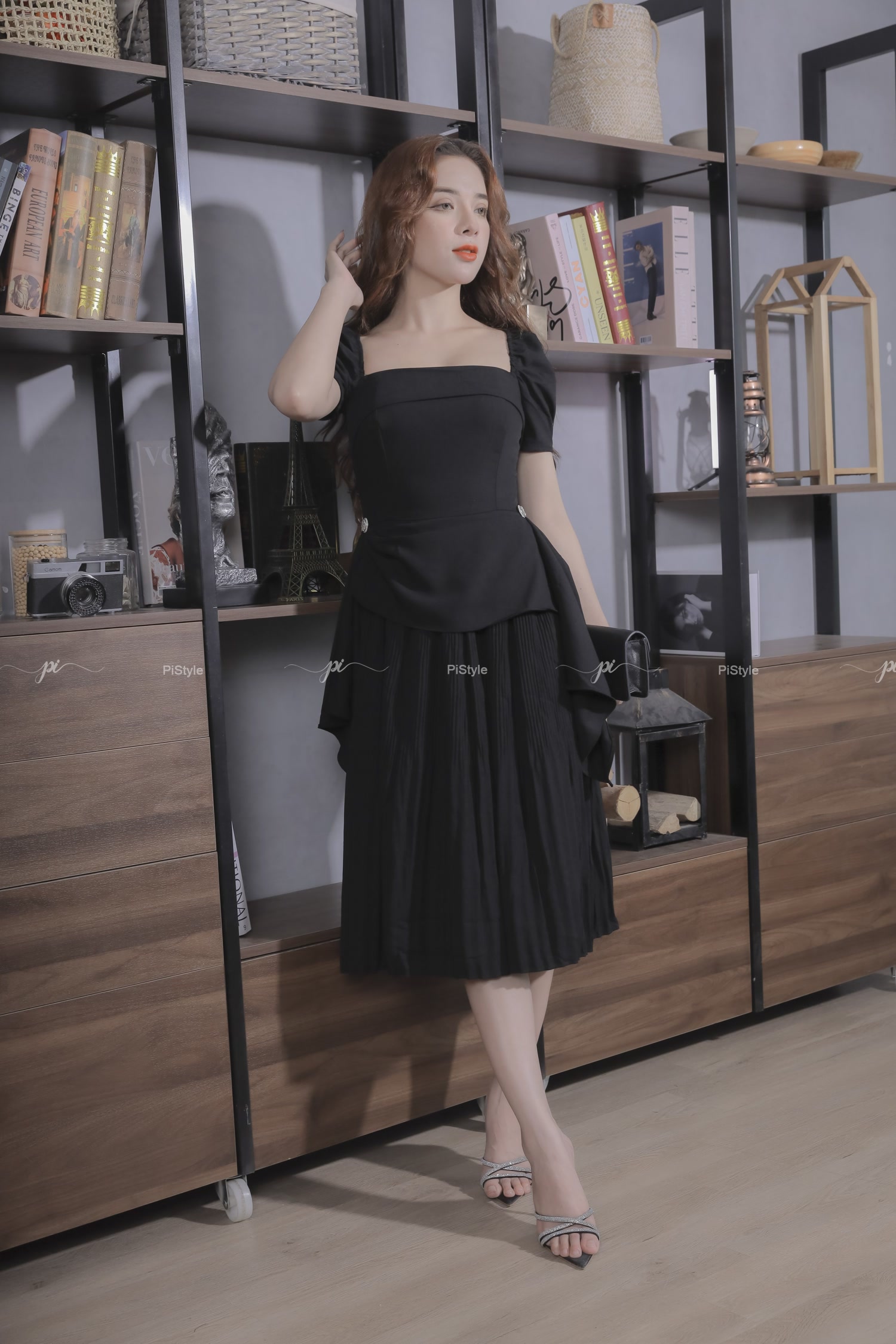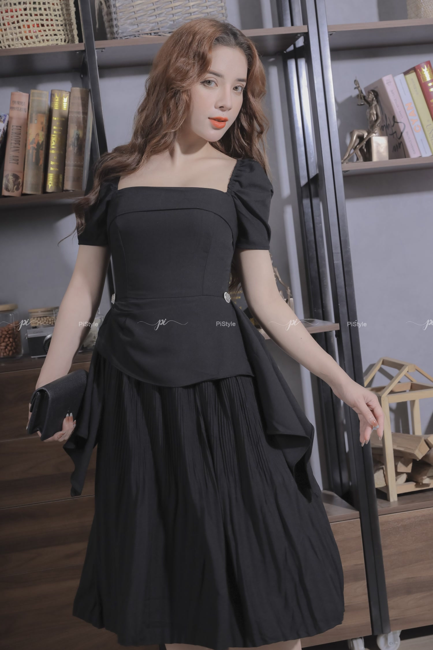 Pi - Váy cao cấp màu đen eo cách điệu 23V001