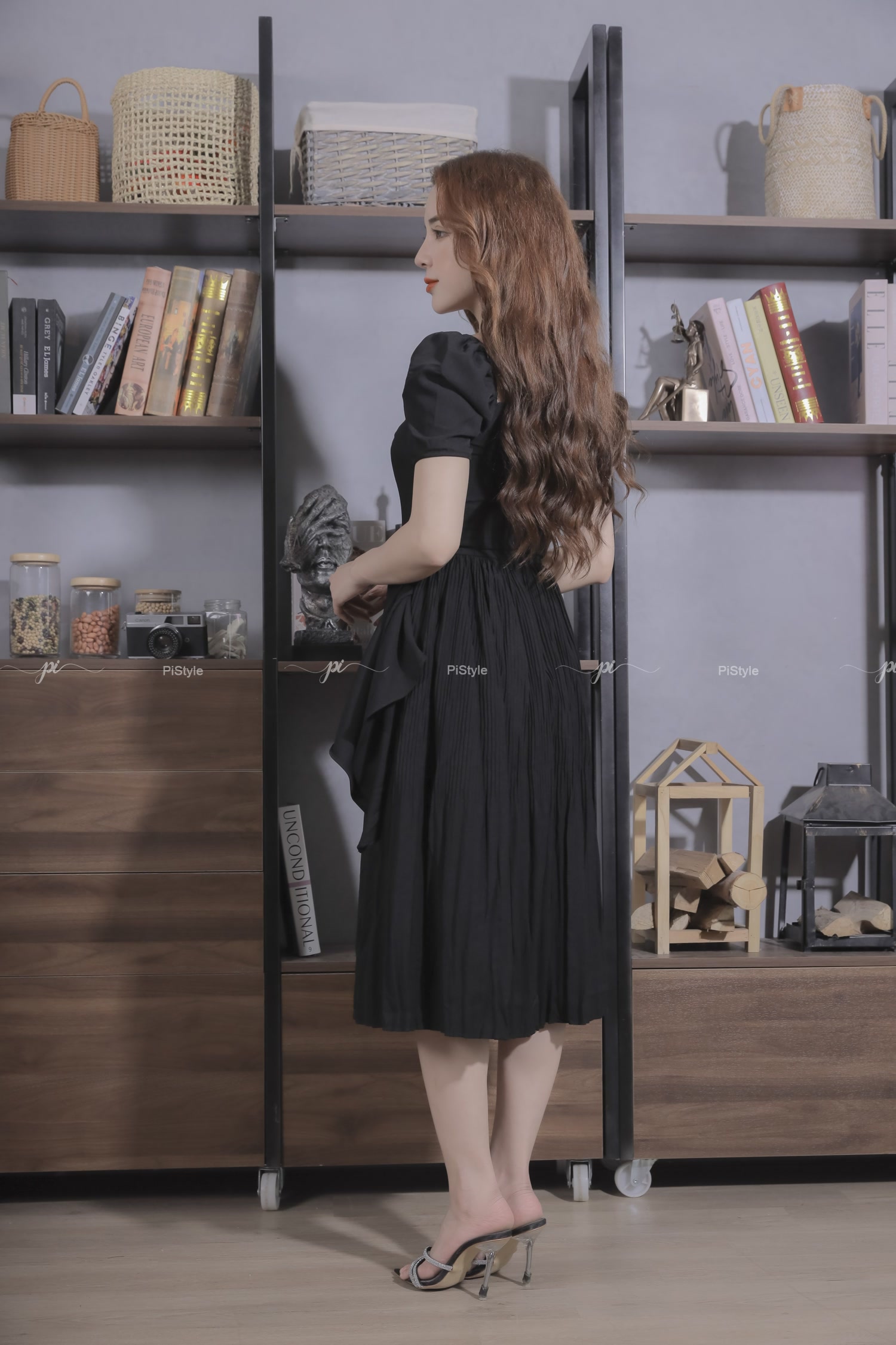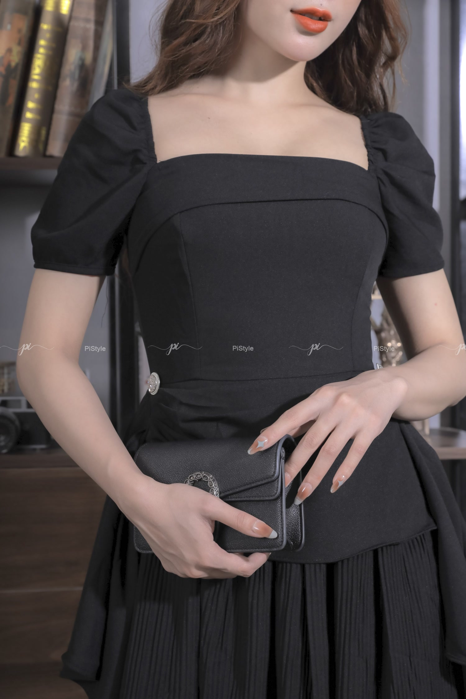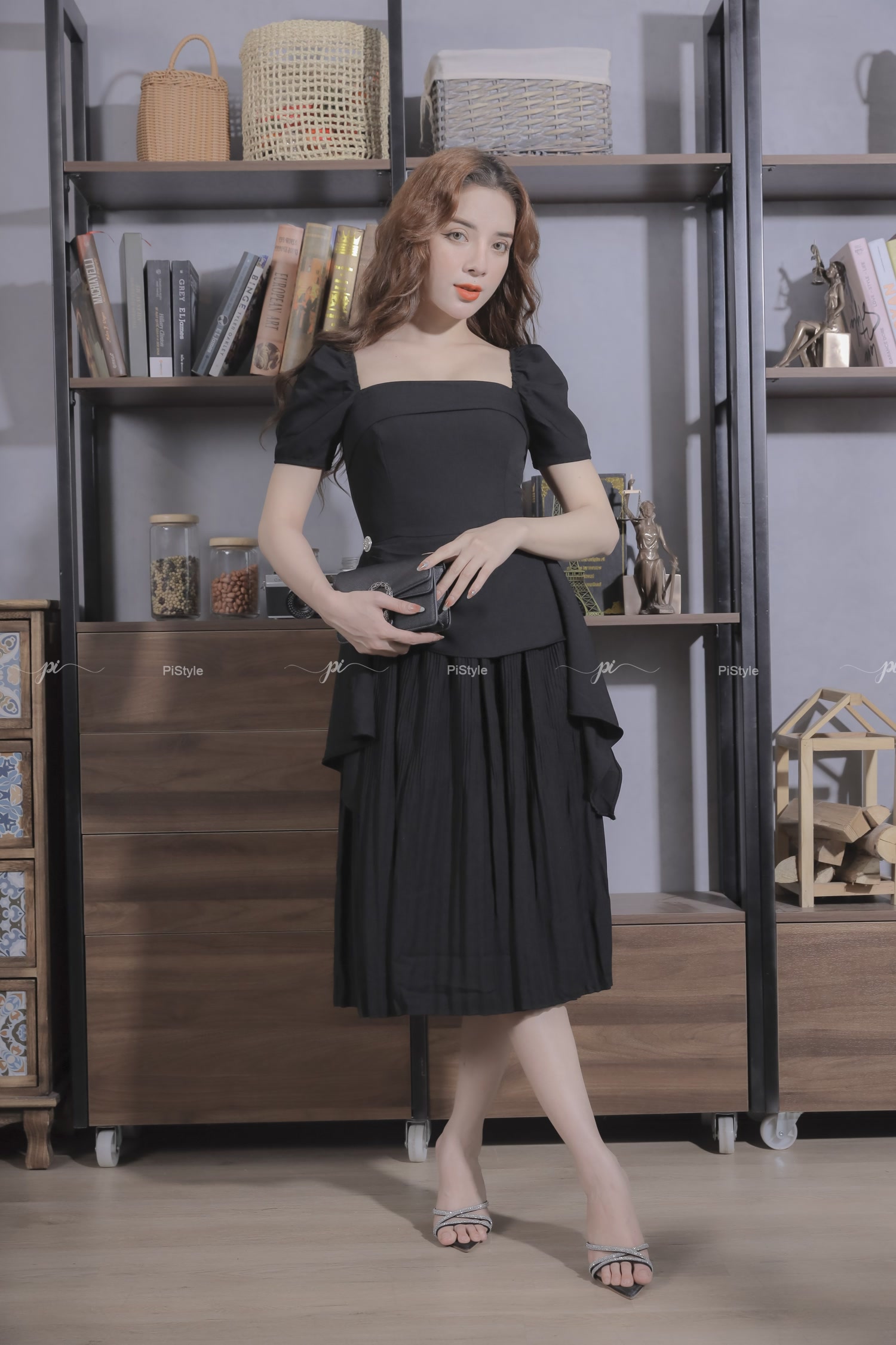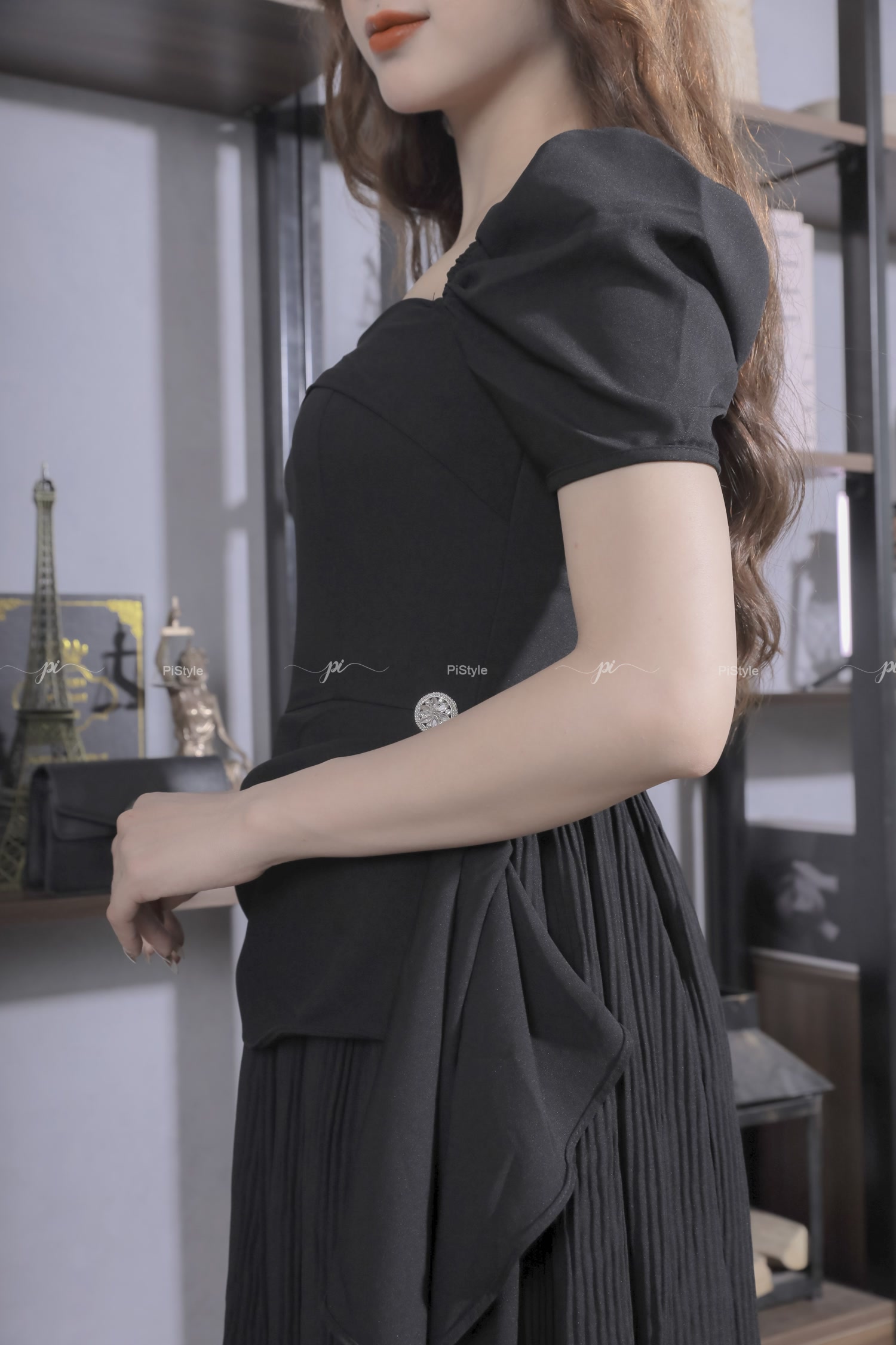 Pi - Váy cao cấp màu đen eo cách điệu 23V001