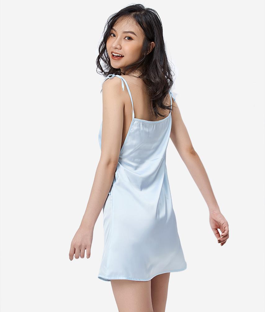 ✨Váy lụa Pink Stull trơn cột dây xanh pastel