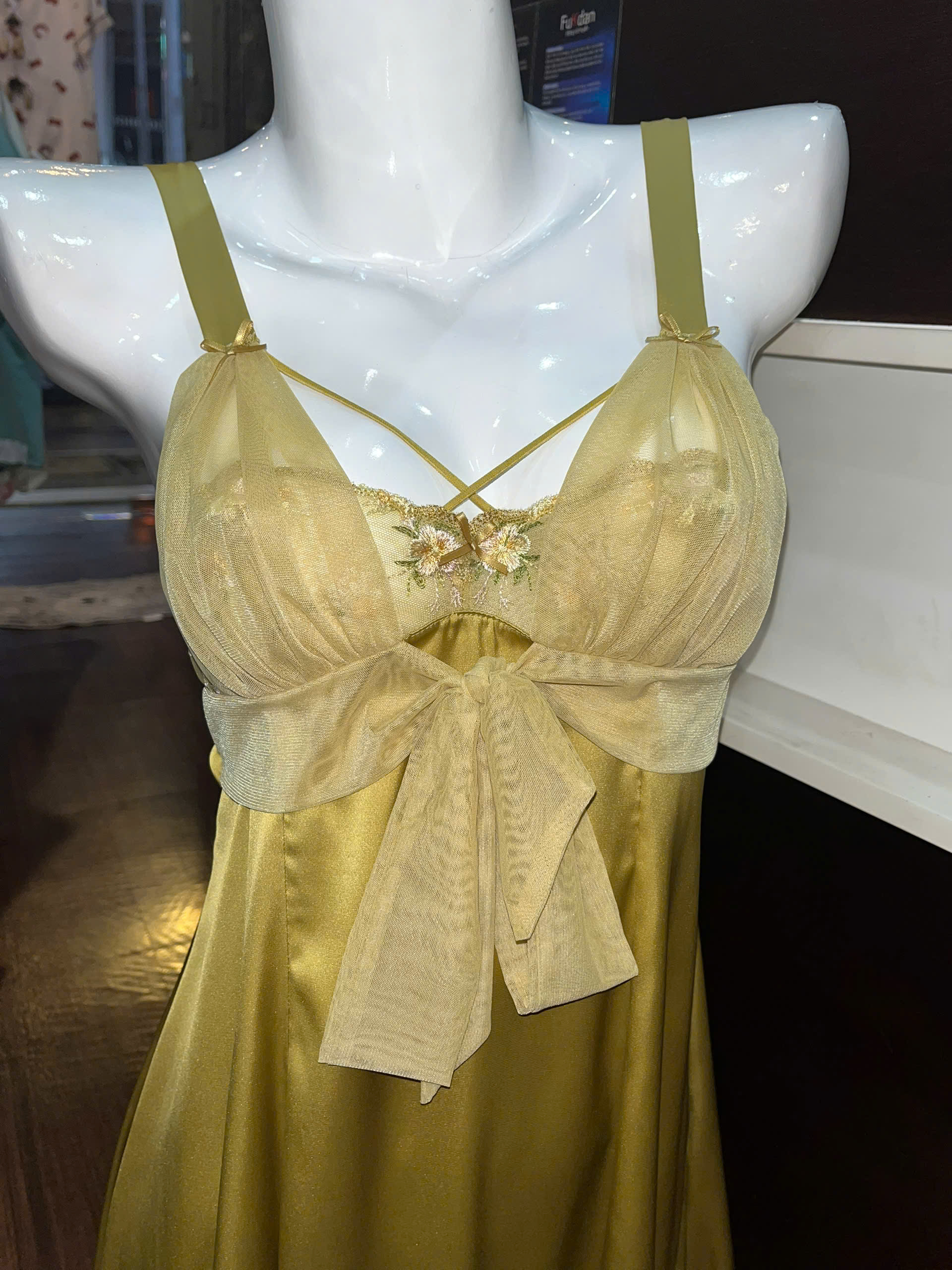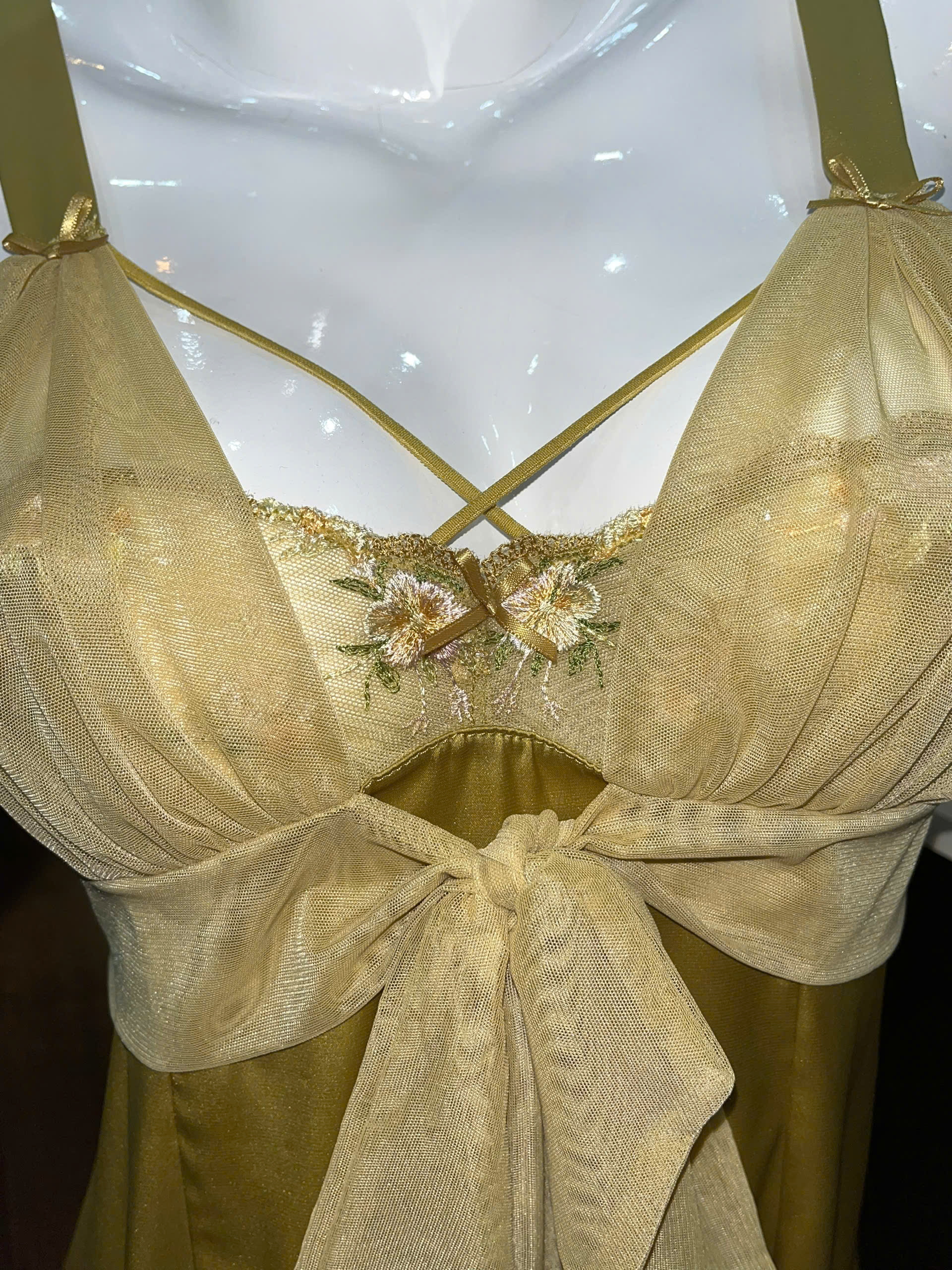 Thương hiệu: Sanny House Tên sản phẩm: Váy ngủ Chất liệu: lụa cao cấp mềm mịn, co giãn, thấm hút tốt Kiểu dáng: gợi cảm, trẻ trung, hiện đại Màu: vàng Size: dưới 56kg LƯU Ý: