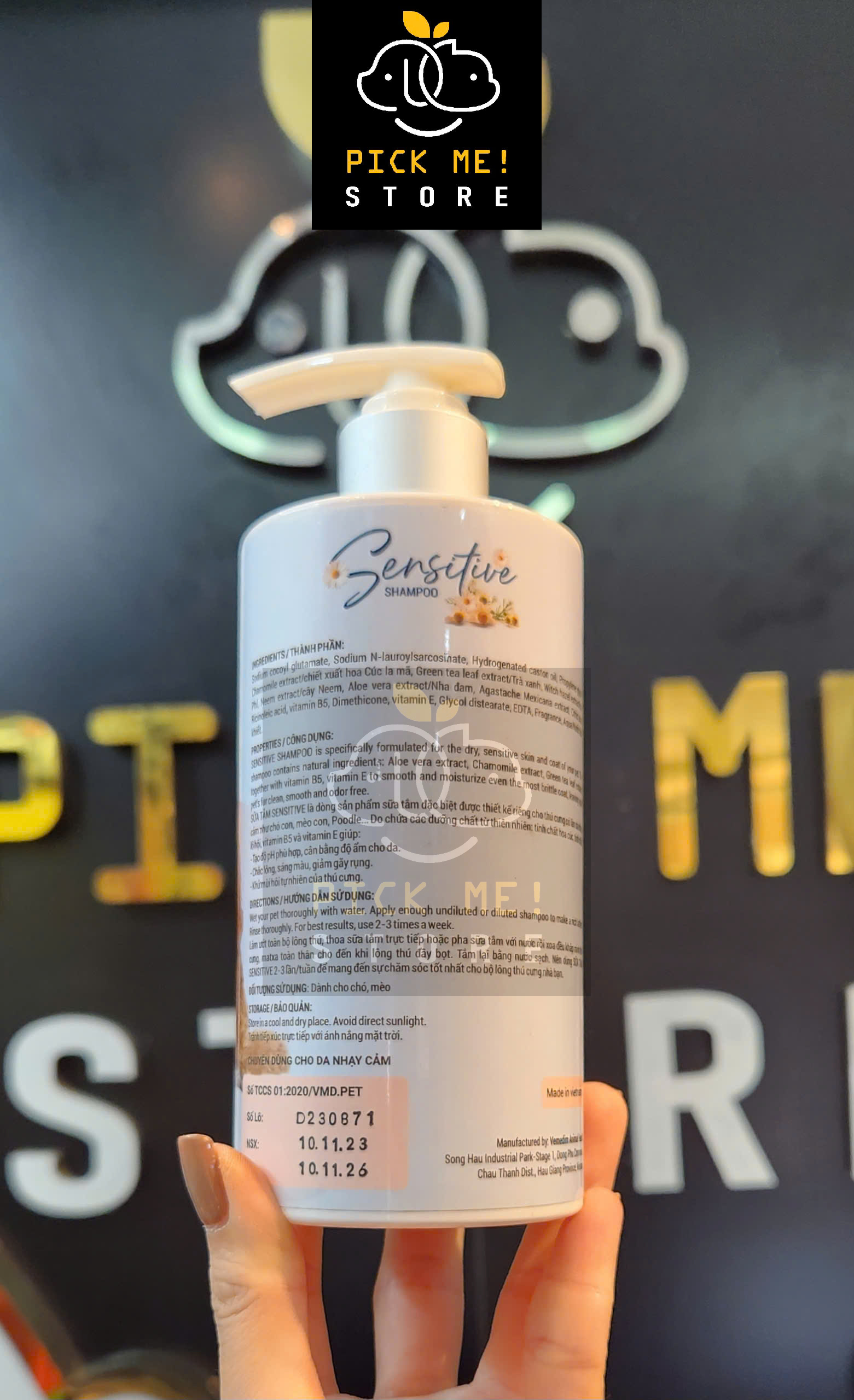 Vemedim Sensitive Shampoo - dòng sản phẩm sữa tắm đặc biệt được thiết kế riêng cho thú cưng có làn da nhạy cảm, tinh chất hoa cúc, tinh chất lô hội, vitamin B5 và vitamin E CÔNG DỤNG: SỮA TẮM SENSITIVE là dòng sản phẩm sữa tắm đặc biệt được thiết kế riêng cho thú cưng có làn da nhạy cảm như chó con, mèo con, Poodle… Do chứa các dưỡng chất từ thiên nhiên: tinh chất hoa cúc, tinh chất lô hội, vitamin B5 và vitamin E giúp: