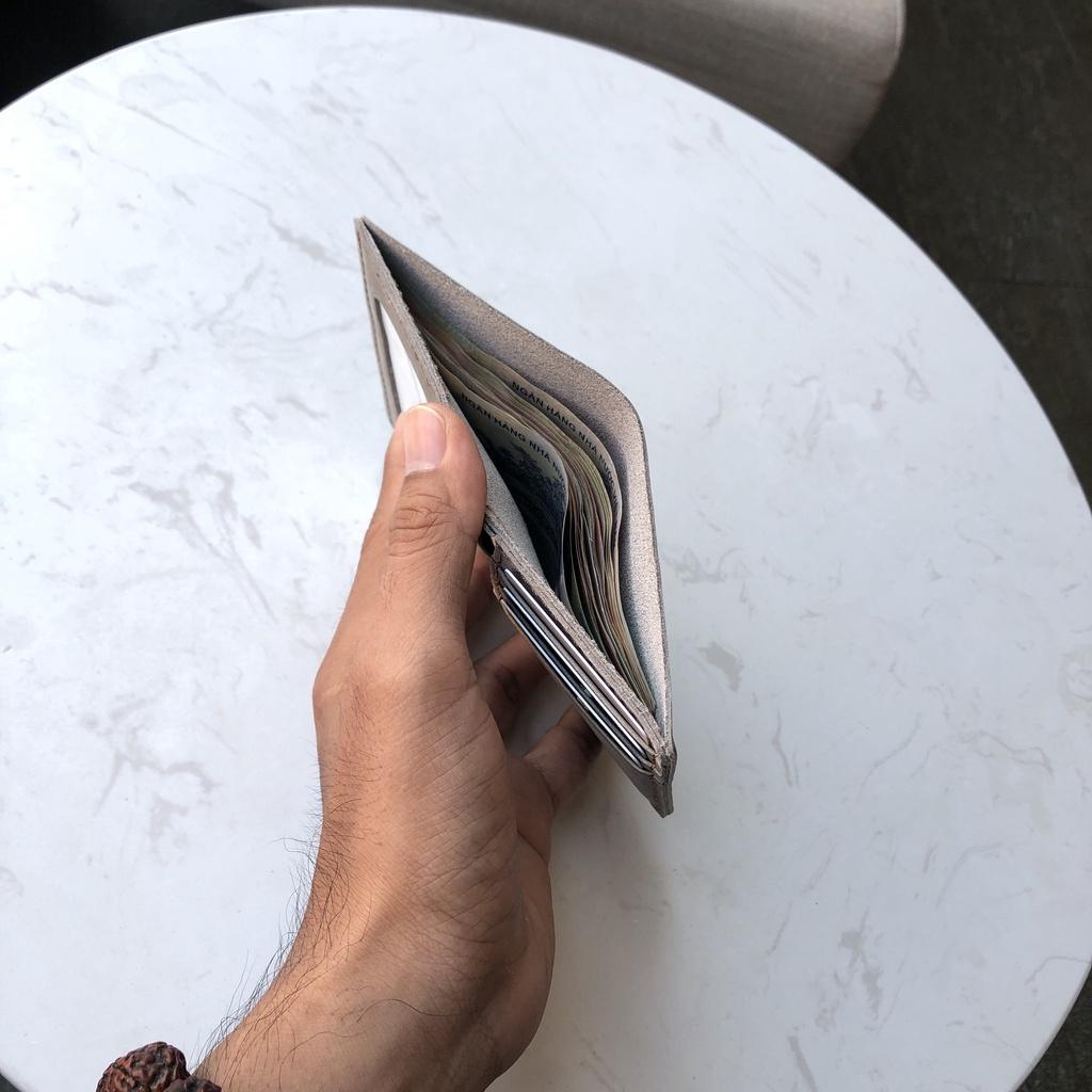 < Để 20-30 tờ tiền thẳng, thẻ atm, chứng minh thư, giấy tờ xe mới.