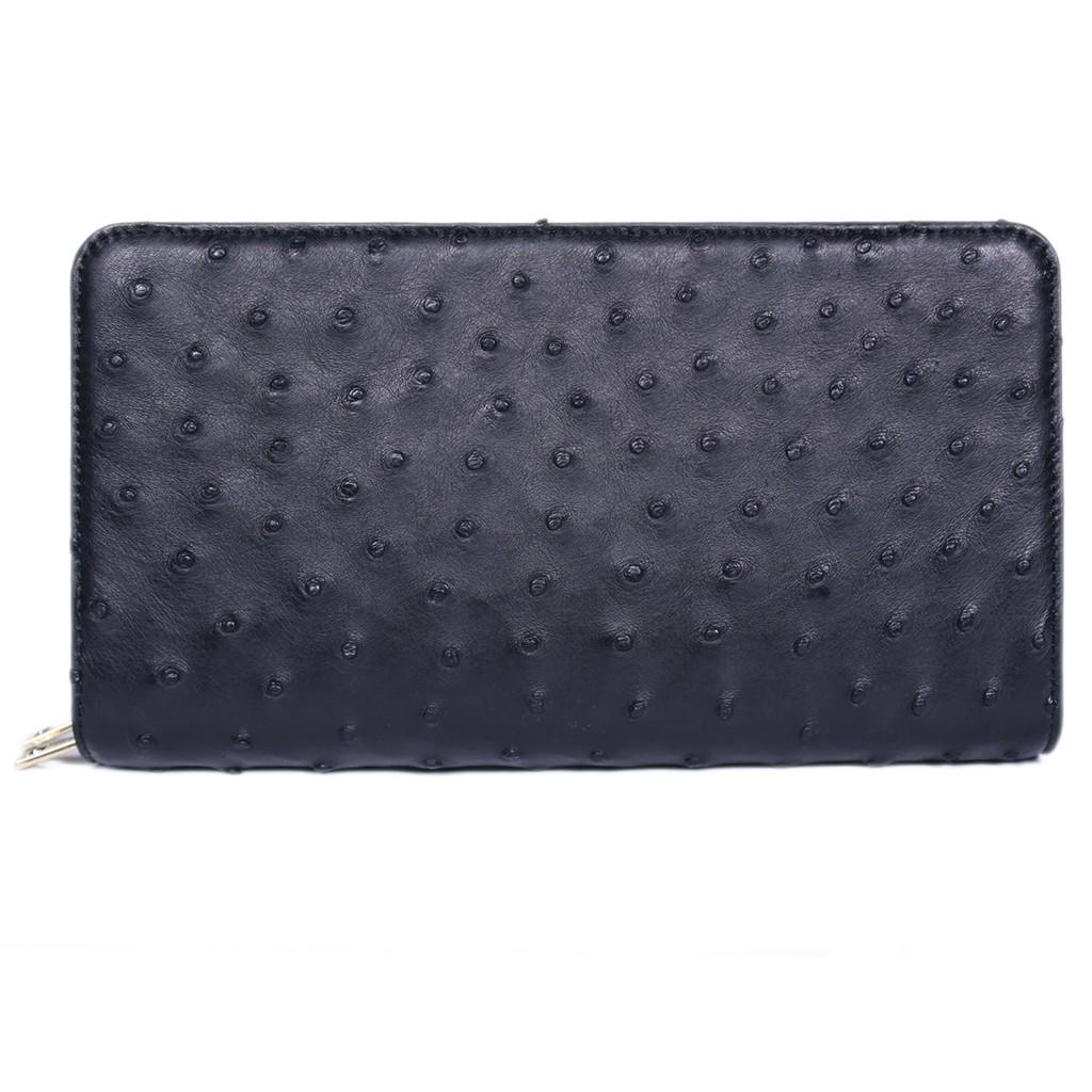 • Tên sản phẩm: Ví cầm tay da đà điểu Huy Hoàng 2 khóa thụt màu đen