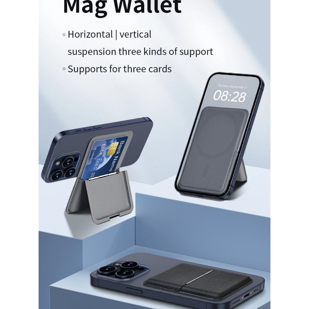 Mô tả sản phẩm: Ví đựng thẻ nam châm hút từ tính WI WU Mag Wallet MW-001 tích hợp giá đỡ điện thoại gập gọn gắn sau điện thoại ị Phone