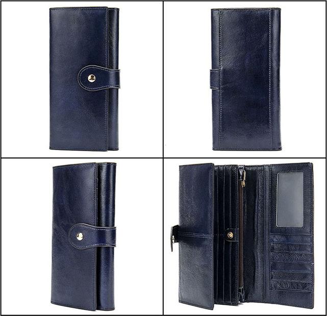 Ví nữ da bò dáng dài BHM8303 xanh blue. Ví nữ gập ba