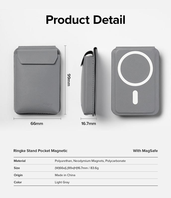 ƯU ĐIỂM SẢN PHẨM ✓ Tích hợp 2 tính năng trong một: ví đựng thẻ và giá đỡ Magnetic có thể điều chỉnh góc độ nghiêng ✓ Chất liệu giả da PU leather cao cấp mang lại cảm giác mềm và chắc chắn ✓ Dòng Wallet có thiết kế mỏng có thể chứa được tới 3 thẻ kích thước tiêu chuẩn. Dòng Pocket có thiết kế rộng rãi hơn, có thể chứa tối đa 13 thẻ hoặc các vật dụng cá nhân nhỏ. ✓ Kích thước nhỏ gọn tương thích hầu hết với mọi thiết bị. ✓ Nên sử dụng sản phẩm này với ốp lưng Magnetic hoặc ốp lưng thông thường nhưng có dán vòng từ tính Magnetic. Khuyến khích sử dụng ốp lưng từ tính Ringke Magnetic hoặc vòng từ tính Ringke Magnetic Plate để tương thích tốt hơn. GIỚI THIỆU RINGKE Ringke là thương hiệu nổi tiếng trong lĩnh vực công nghệ được thành lập từ năm 2003. Là thương hiệu đến từ Hàn Quốc với tiêu chuẩn chất lượng và độ hoàn thiện cực kỳ tốt. Các sản phẩm của Ringke thường được khách hàng đánh giá cao bởi triết lý “Live A Better Day”, nhờ vậy các sản phẩm của Ringke hướng đến giải quyết những vấn đề thường ngày của khách hàng nhằm mang đến sự tiện dụng và thoải mái nhất. ️ MỘT SỐ LƯU Ý KHI SỬ DỤNG SẢN PHẨM NÀY ✓ Sản phẩm cần được dùng với ốp lưng từ tính Magnetic hoặc ốp lưng thông thường nhưng có gắn vòng từ tính Magnetic Plate. ✓ Nên tháo sản phẩm này trước khi sử dụng sạc Magnetic, sạc không dây hoặc các phụ kiện Magnetic khác. ✓ Sản phẩm này chỉ là phụ kiện được thiết kế với mục đích chính là nâng cao khả năng sử dụng và làm đẹp cho thiết bị. ✓ Để sản phẩm xa các vật sắc nhọn vì có thể làm trầy xước sản phẩm. ✓ Không cầm sản phẩm khi tay ướt hoặc để sản phẩm trong môi trường nhiệt độ cao. ✓ Không sử dụng chất cồn hoặc các loại tẩy rửa vì có thể làm hư hại tới chất liệu sản phẩm. ✓ Tuỳ thuộc vào vị trí lỗ camera của thiết bị và vòng Magnetic mà sản phẩm có thể che lỗ camera. Điều này không làm ảnh hưởng đến tính năng của thiết bị, bạn chỉ cần tháo phụ kiện Magnetic trước khi dùng camera. Do đó, chúng tôi không chấp nhận trả hàng/hoàn tiền vì lý do này. Quý khách vui lòng cân nhắc trước khi mua. THÔNG SỐ KỸ THUẬT Tên sản phẩm: Ringke Stand Wallet Magnetic và Ringke Stand Pocket Magnetic Chức năng: ví kiêm giá đỡ điện thoại Màu sắc: LIGHT GRAY (Xám)