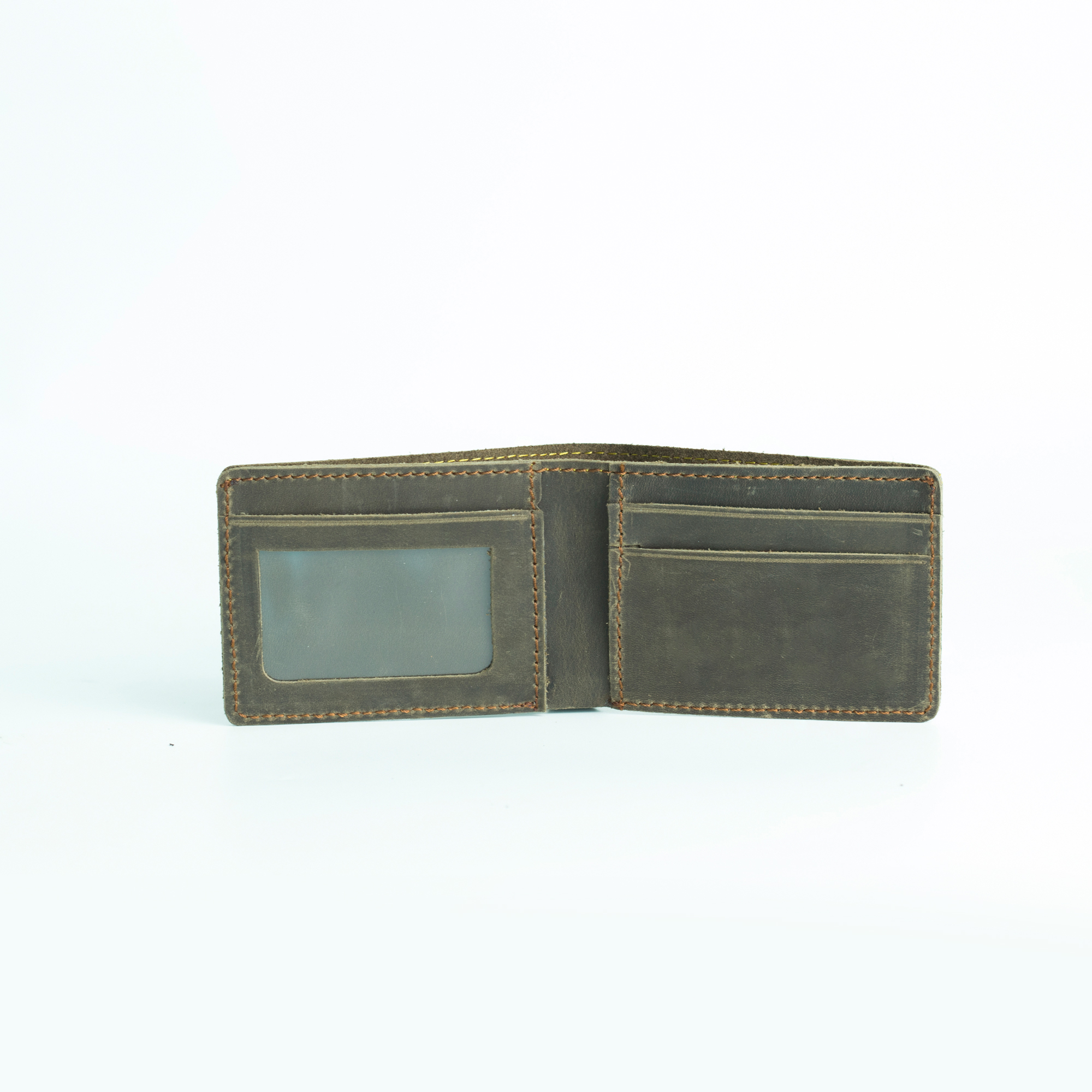 Ví Nam da bò sáp ngựa điên Crazy Horse khâu tay thủ công, Da bò sáp nguyên tấm nhập khẩu Italia