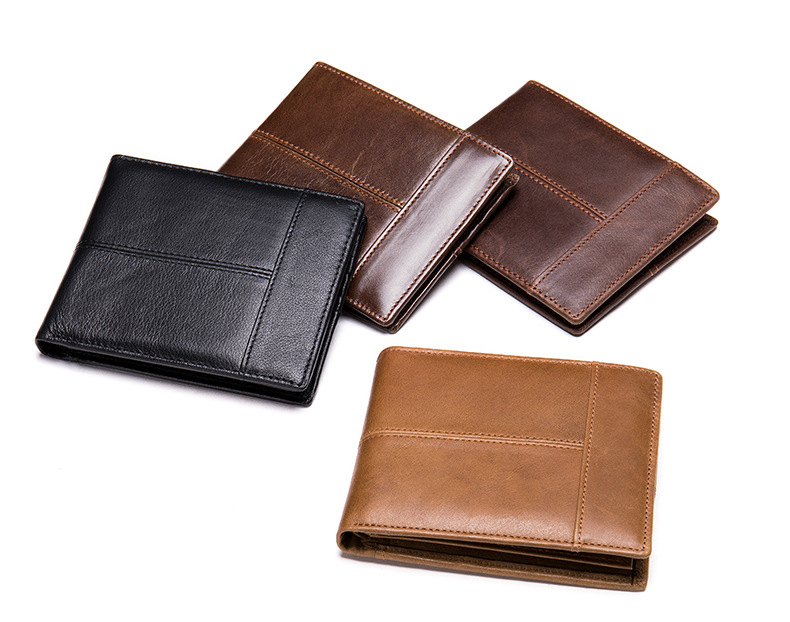 Ví mini nam da bò sáp ngựa điện Crazyhorse V125 cao cấp, bóp đựng thẻ da thật, đường chỉ tinh tế, ví nam nhỏ gọn dáng đứng,
