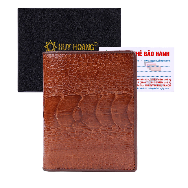 Bóp/Ví da đà điểu Huy Hoàng da chân kiểu đứng màu nâu đỏ, vàng bò, đen, nâu đất 2411-12-13-15