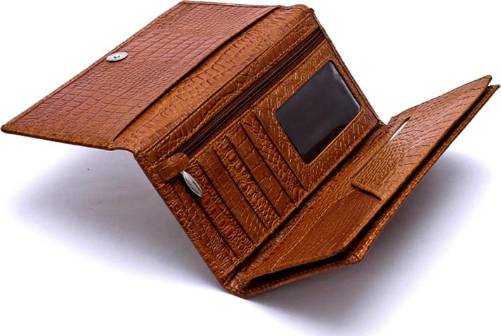Ví/Bóp nữ da bò Huy Hoàng vân cá sấu lớn 3 gấp màu nâu đỏ 3154