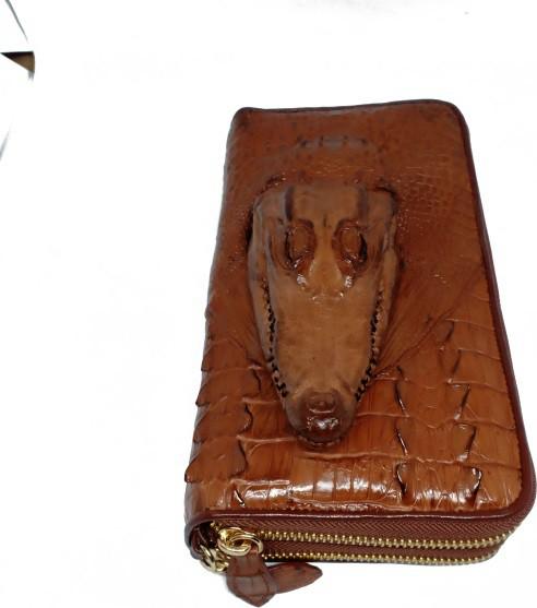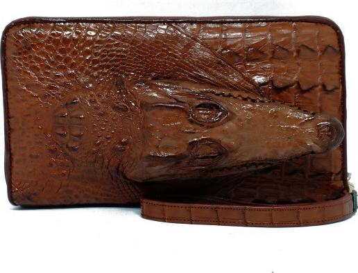 - Tên sản phẩm: Ví nữ da cá sấu Huy Hoàng nhiều ngăn đầu cá sấu màu nâu đỏ HT3728.